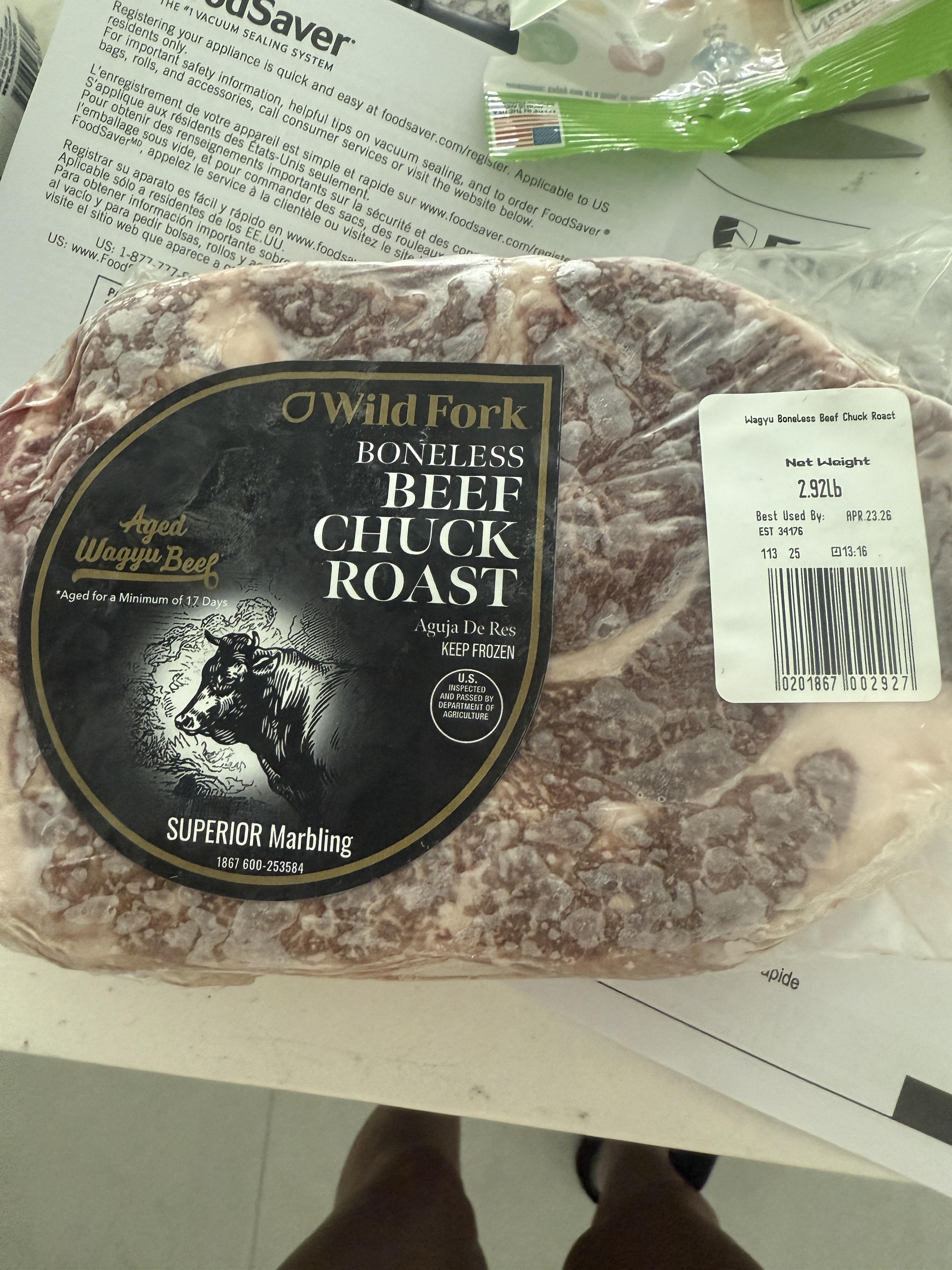 The second question: I have a chuck roast from wild fork.. see picture above.