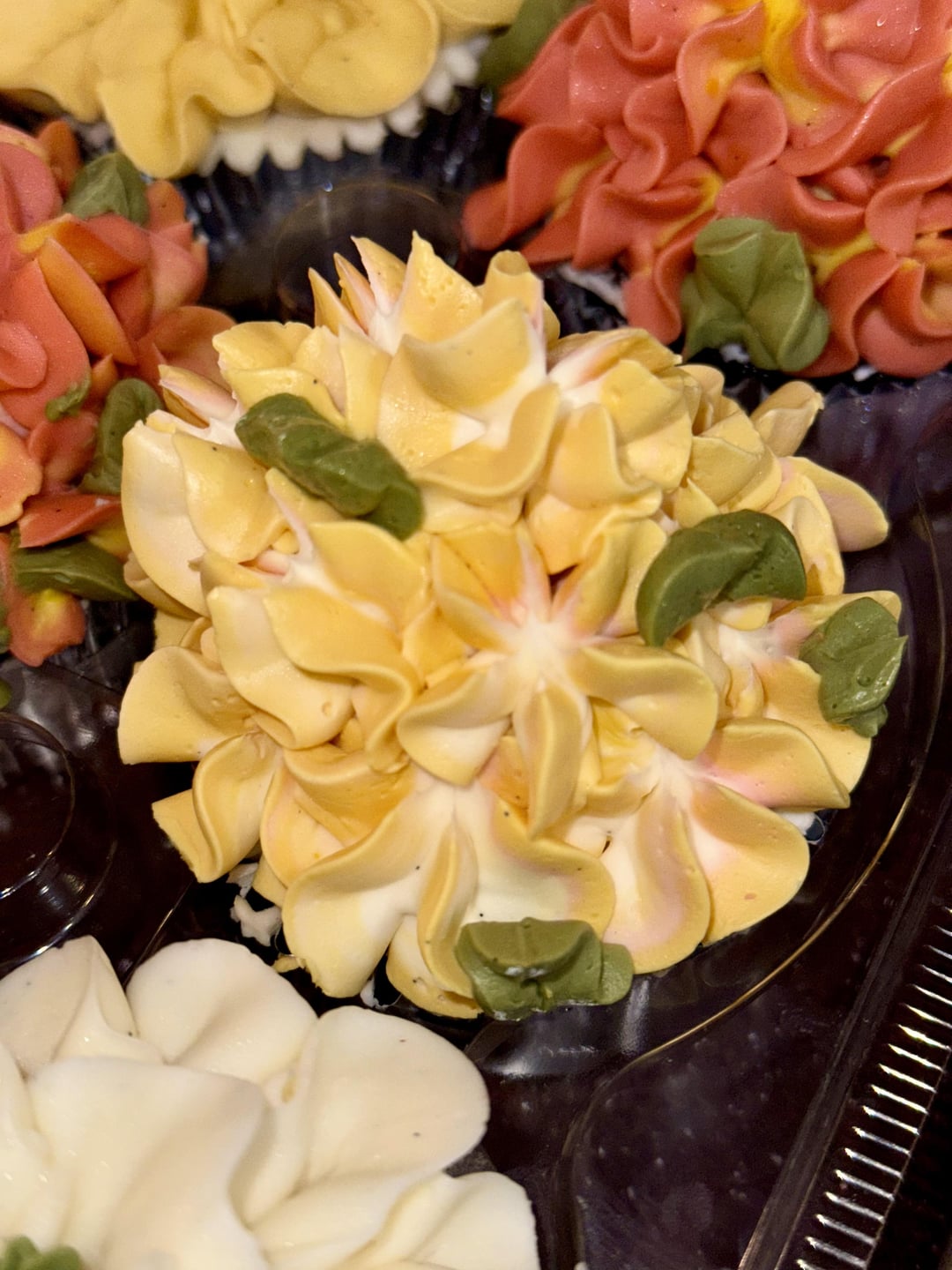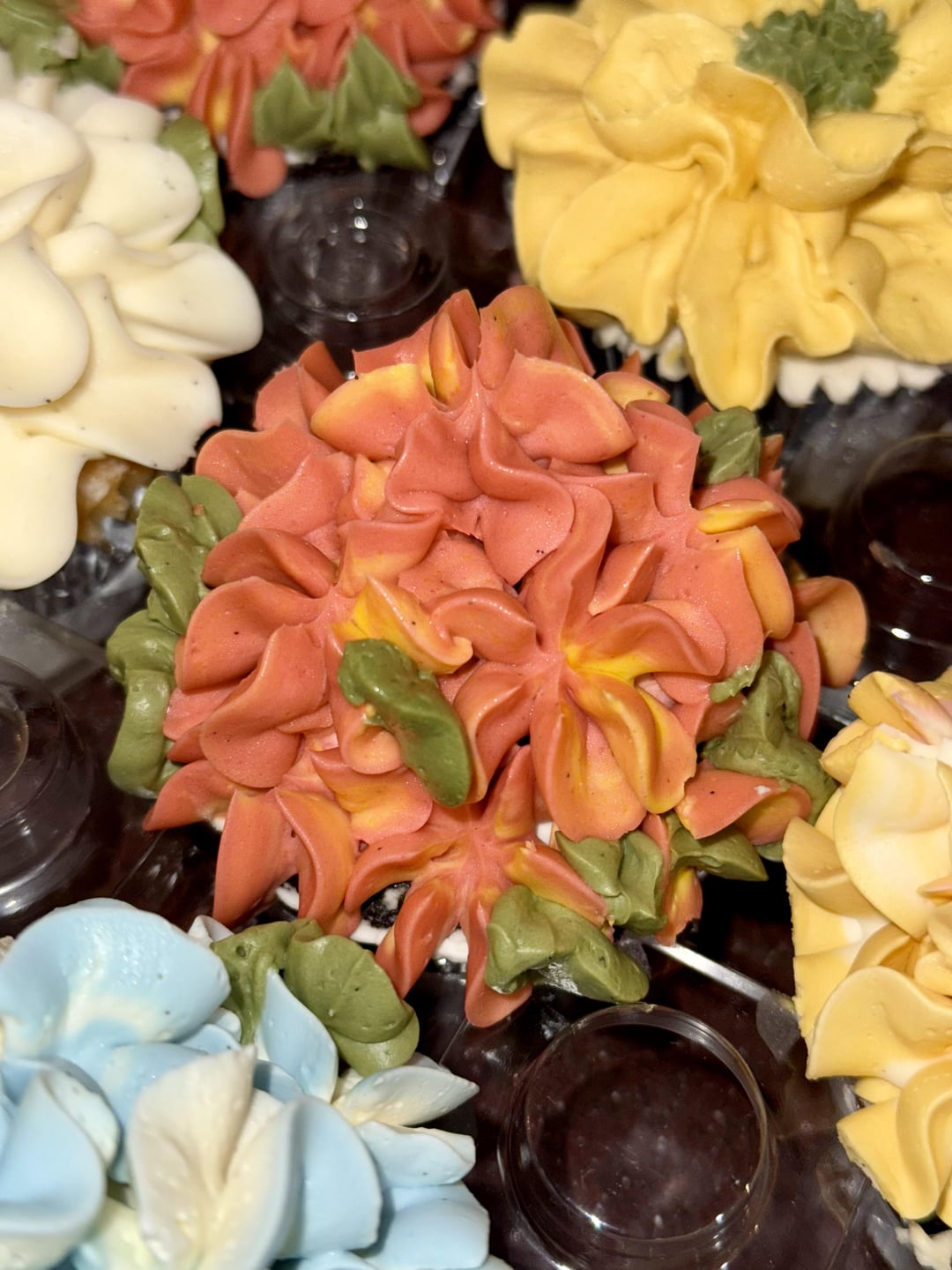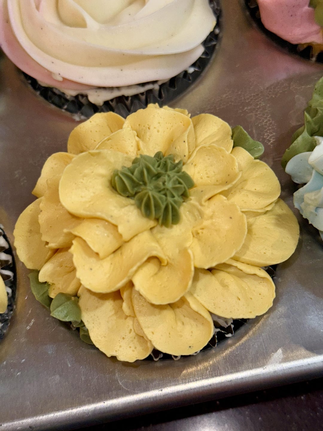 I see the vanilla specks in the frosting and I think it is a nice touch. It makes them feel extra fancy. I would like to know how you made the flowers with the yellow stamen in the middle. Very good detail.