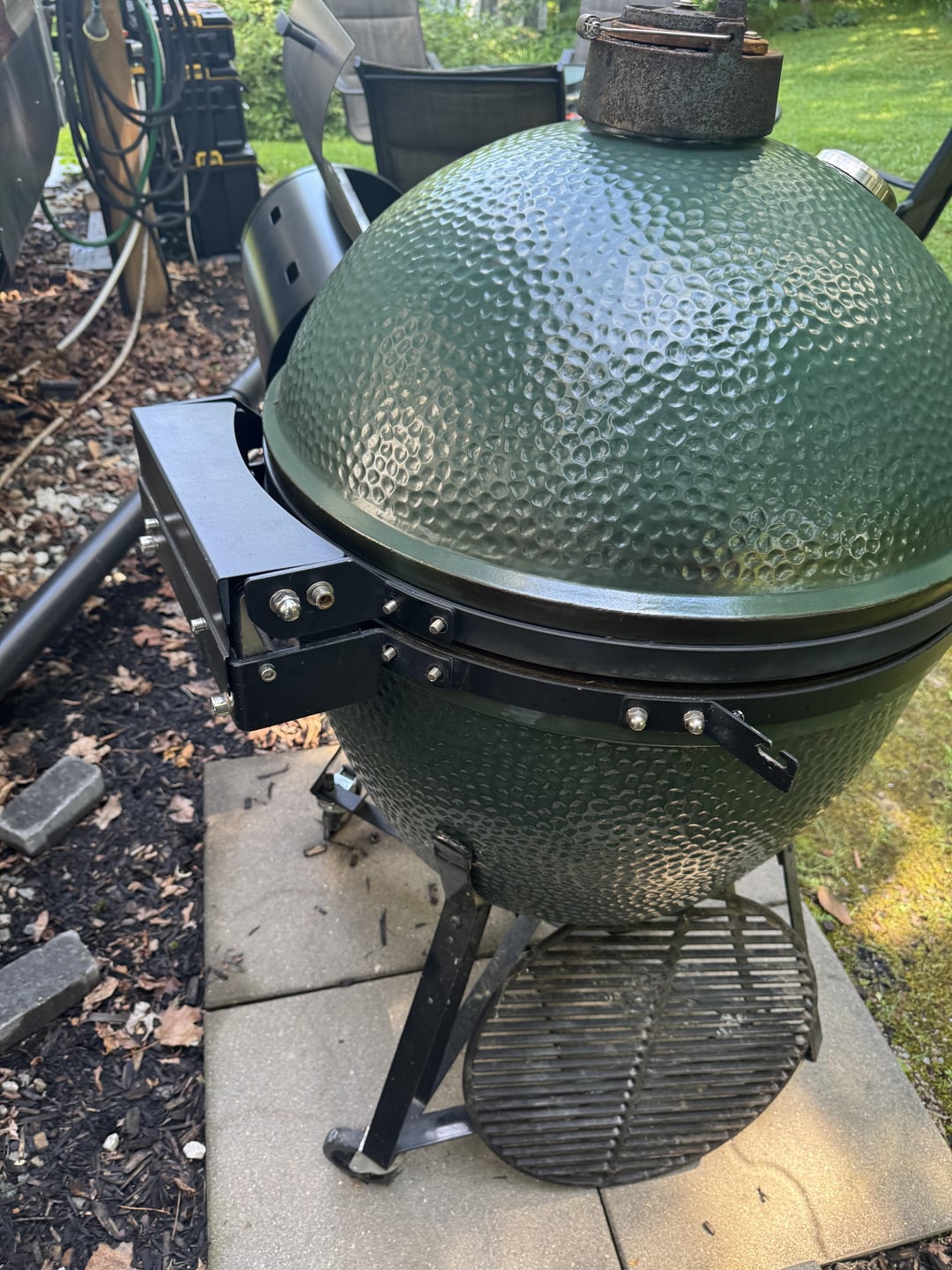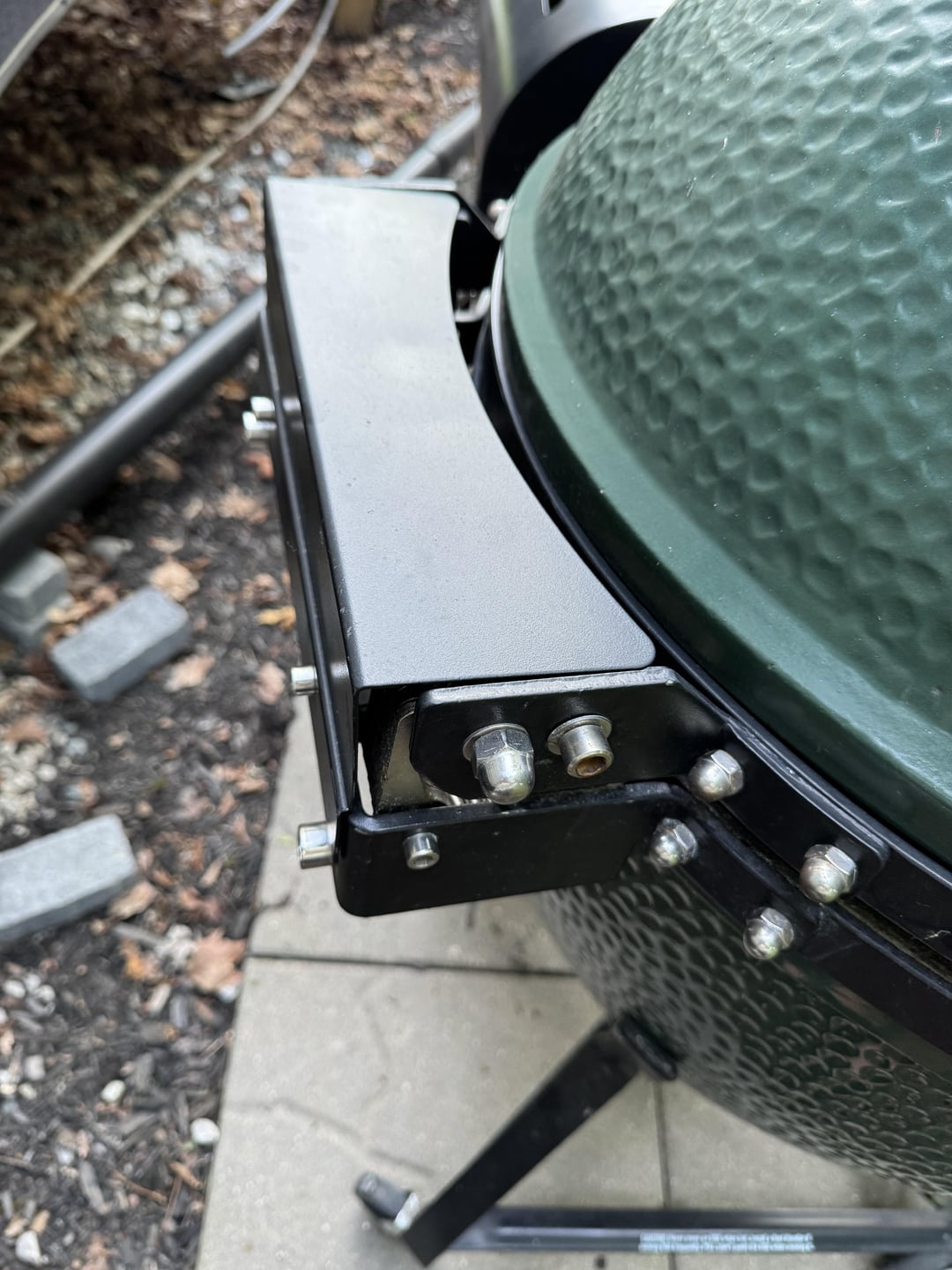 Hey everyone I purchased this used Big Green Egg XL for my seasonal trailer a neighbour sold it to me for 300 bucks. It seems to have had an aftermarket band put on it at some point and it won't snug even when fully tightened. Does anyone know what band and hinge this is by chance trying to find more info also looking for ideas on how to secure it the last thing I want it the dome to come loose.