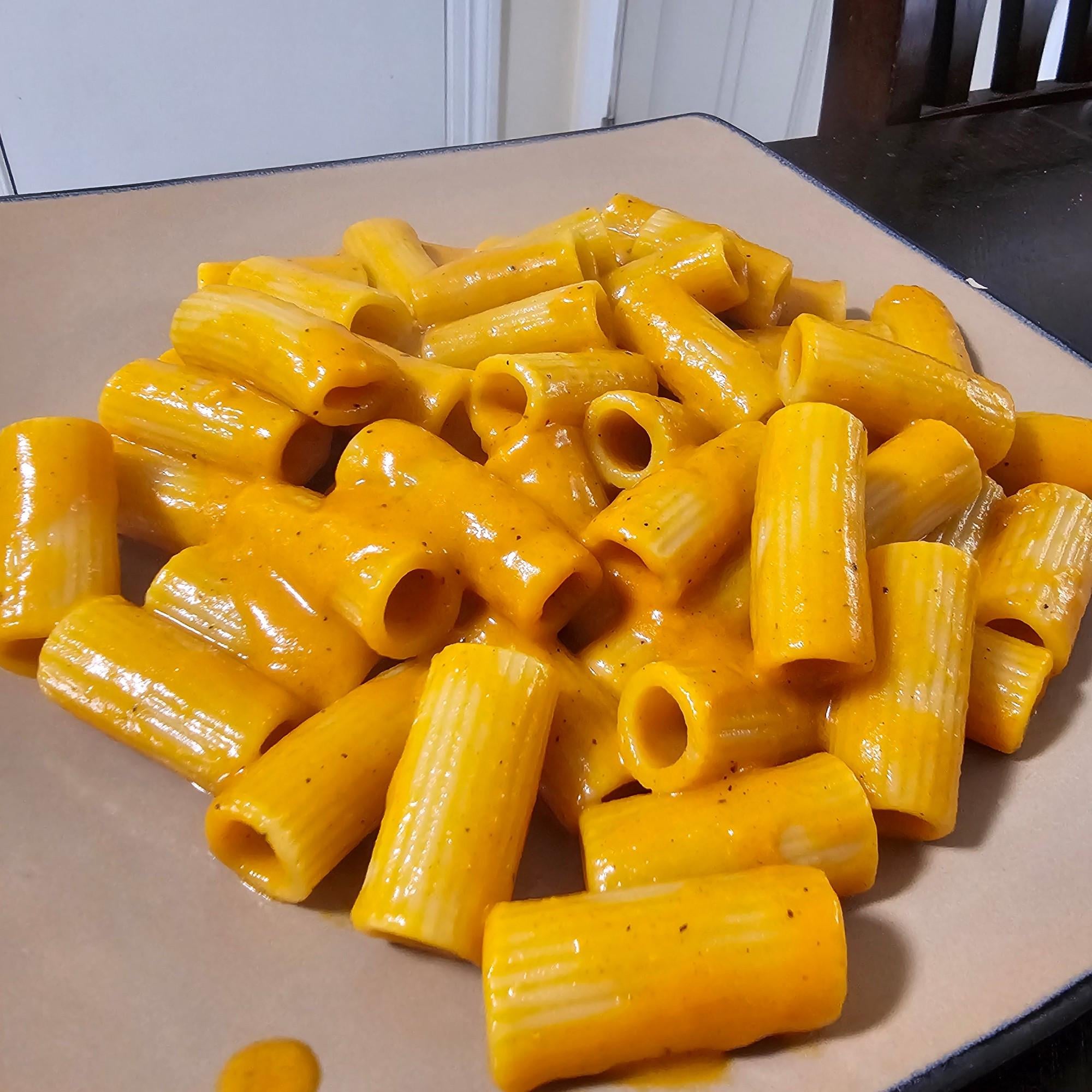 More or less a variation of vodka sauce: I caramelize a whole onion, add some garlic, gochujang, a bit of tomato paste, a bit of chicken base. Deglaze the pan with mezcal, blitz it with an immersion blender and some pasta water, then some butter and blitz again. Pour it back in the pan , add heavy cream, toss in the pasta, grate some Parm.