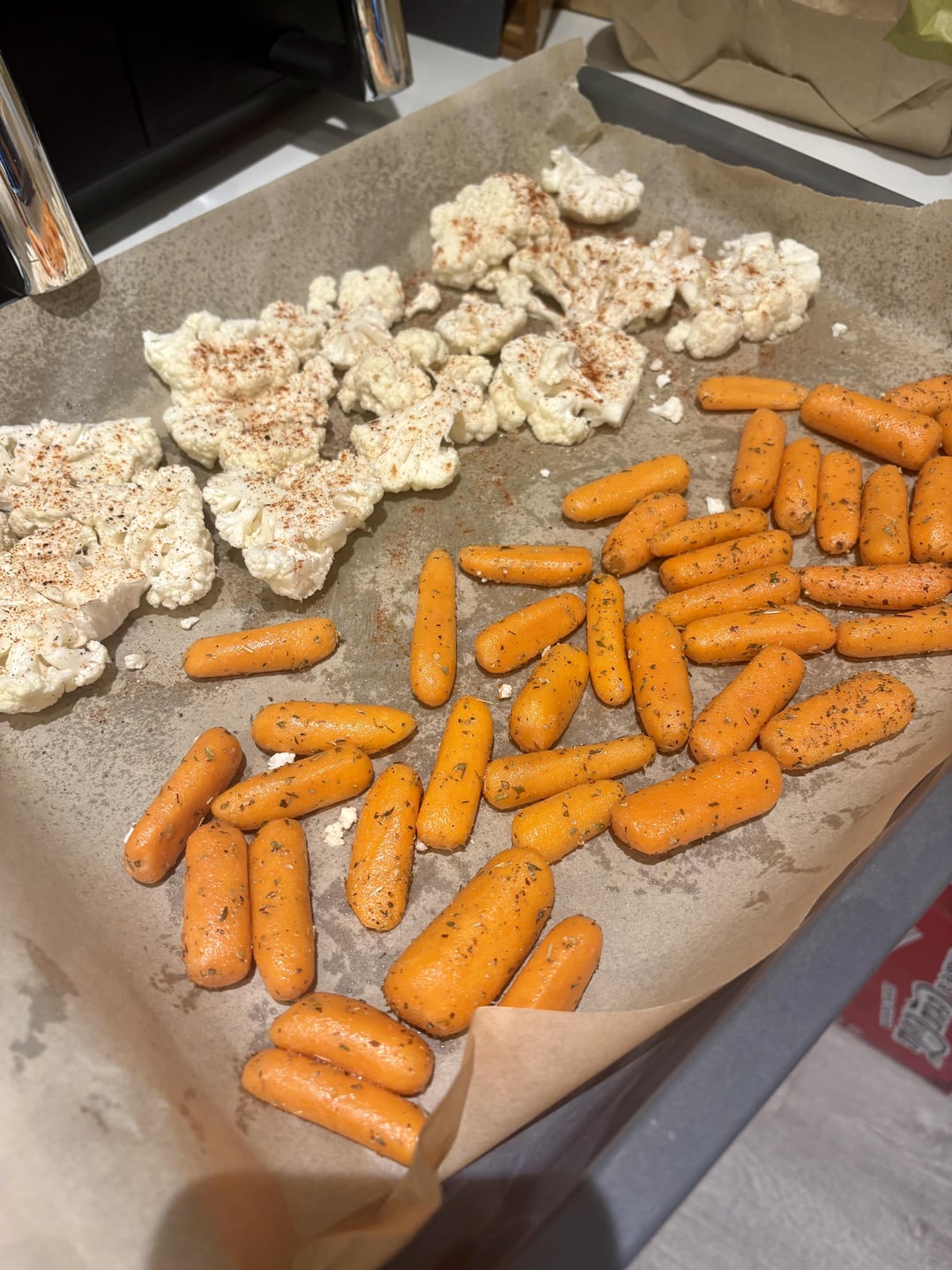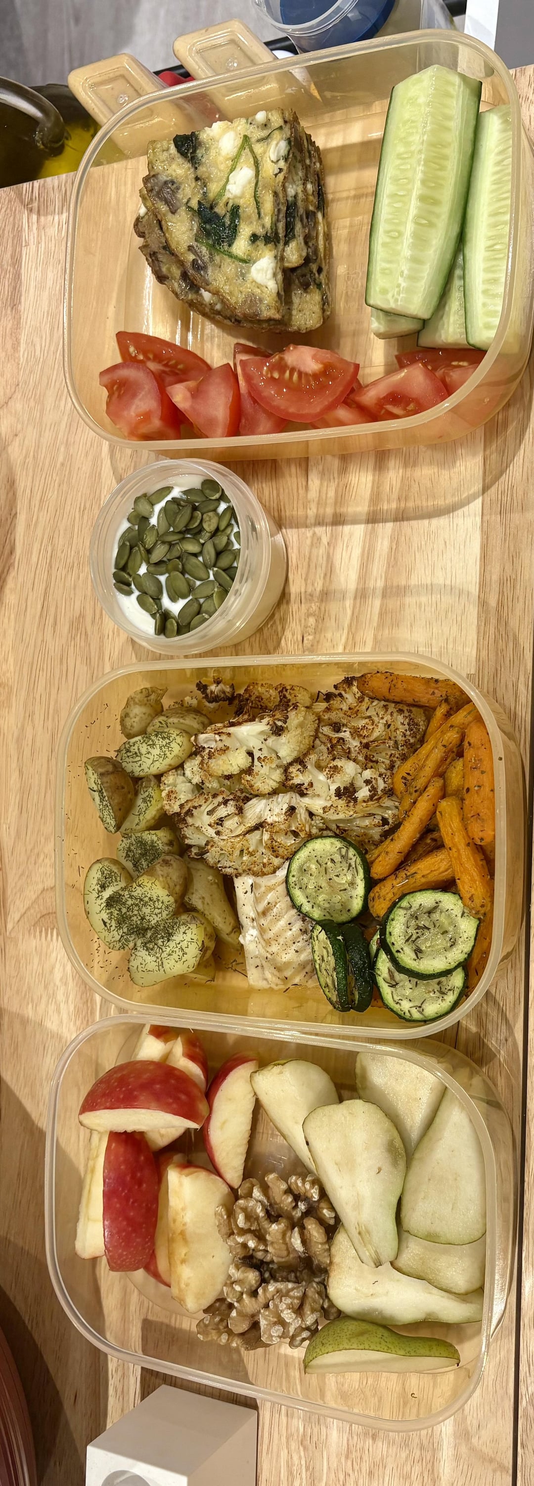 lunch: haddock with veggies (potatoes, cauliflower, carrot, courgette)