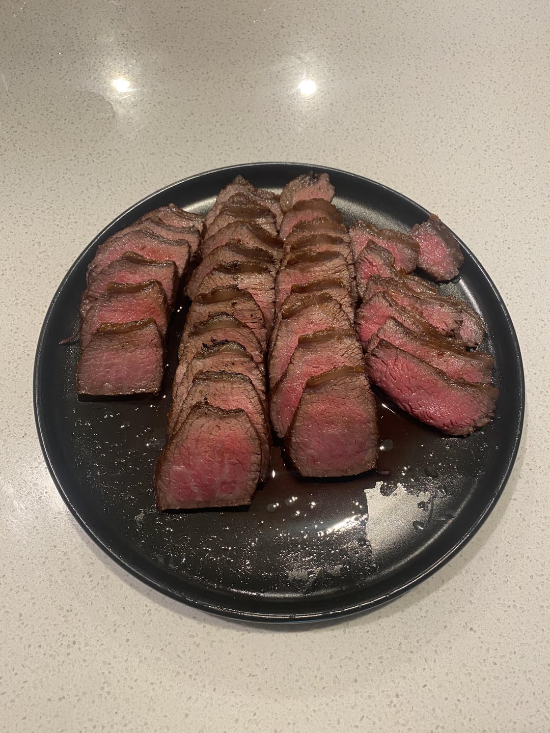 220F in the oven until 115F internal, maybe 30-40 minutes. “Seared” in cast iron but this is the step I think screwed up. I used a little bit of avocado oil and seared the fat cap side first, but I don’t think I needed the additional oil with how much fat rendered out of the beef. Basically ended up shallow frying the first two steaks, I drained some oil and got a better (and quicker) sear on the second two steaks. The point was done exactly how I prefer but the other three were farther along than I like, but all 4 were still delicious. I’m going to try again soon with another picanha.
