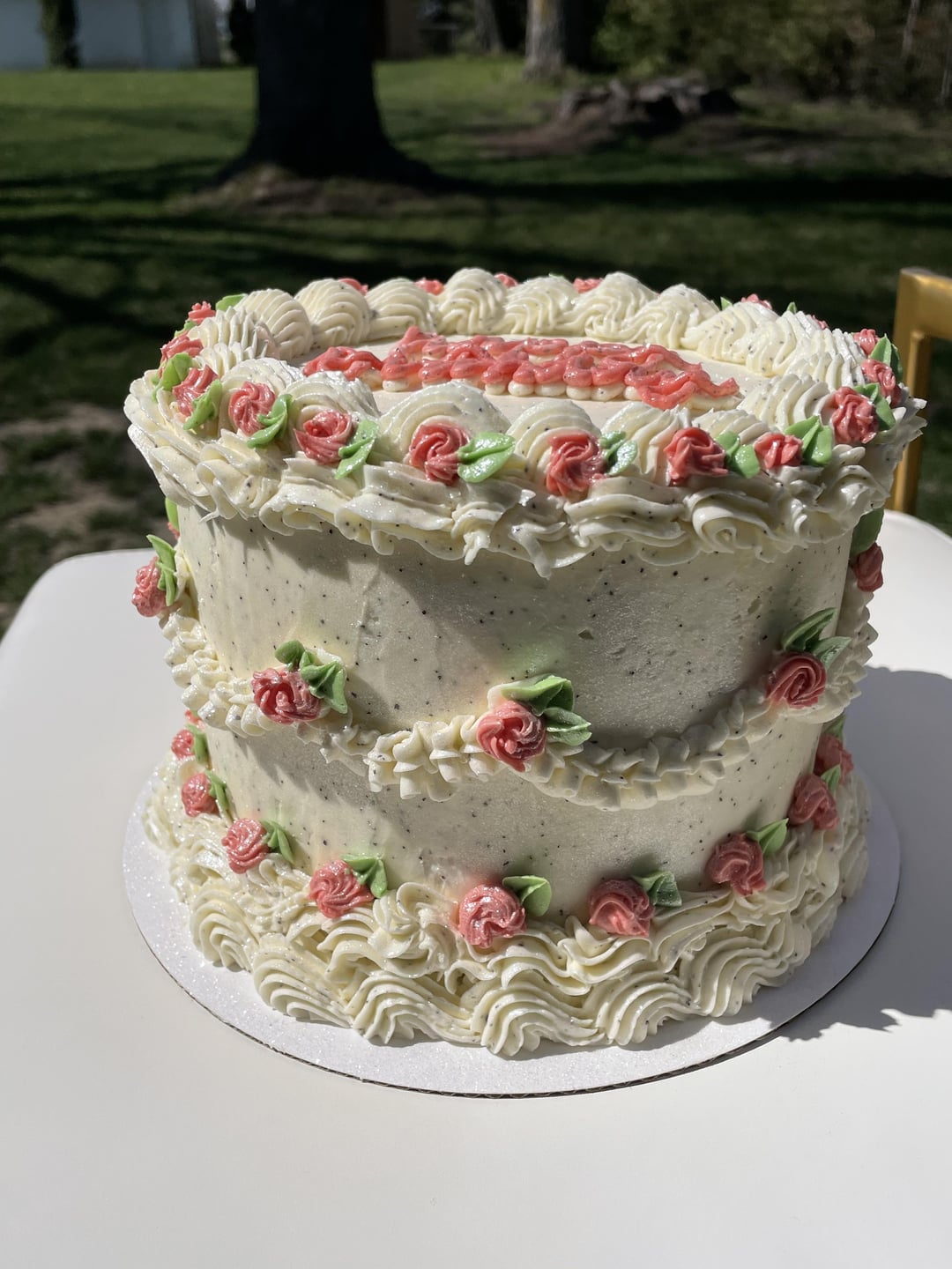 Looks so good! The piping of the roses are perfect