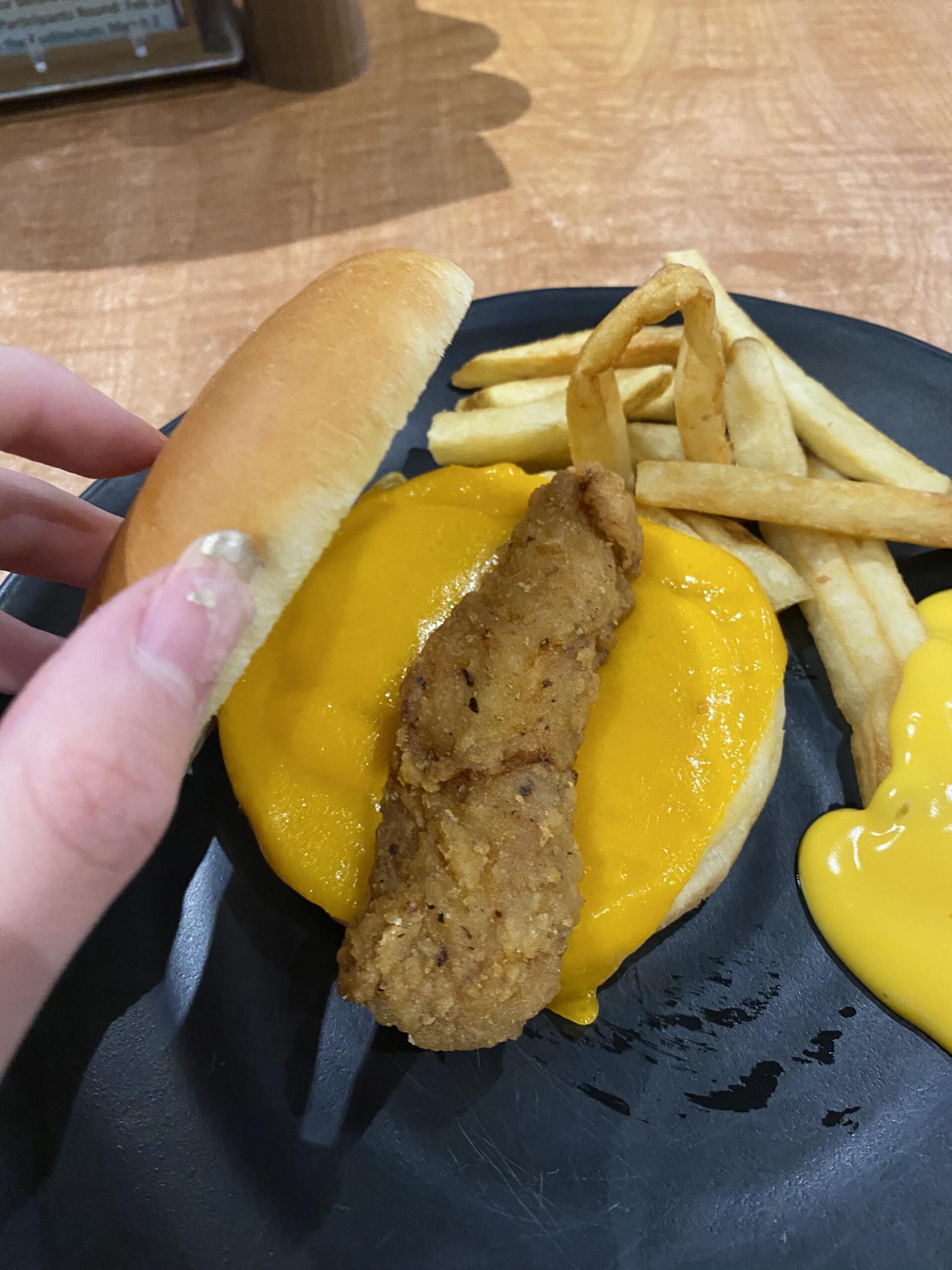 This feels like a Titanic wooden board situation. If you ask the kitchen staff, they’d probably say something like “yeah, technically there’s enough space for two tenders, but we tried and it all fell apart. This is the optimal way to make a chicken sandwich”.