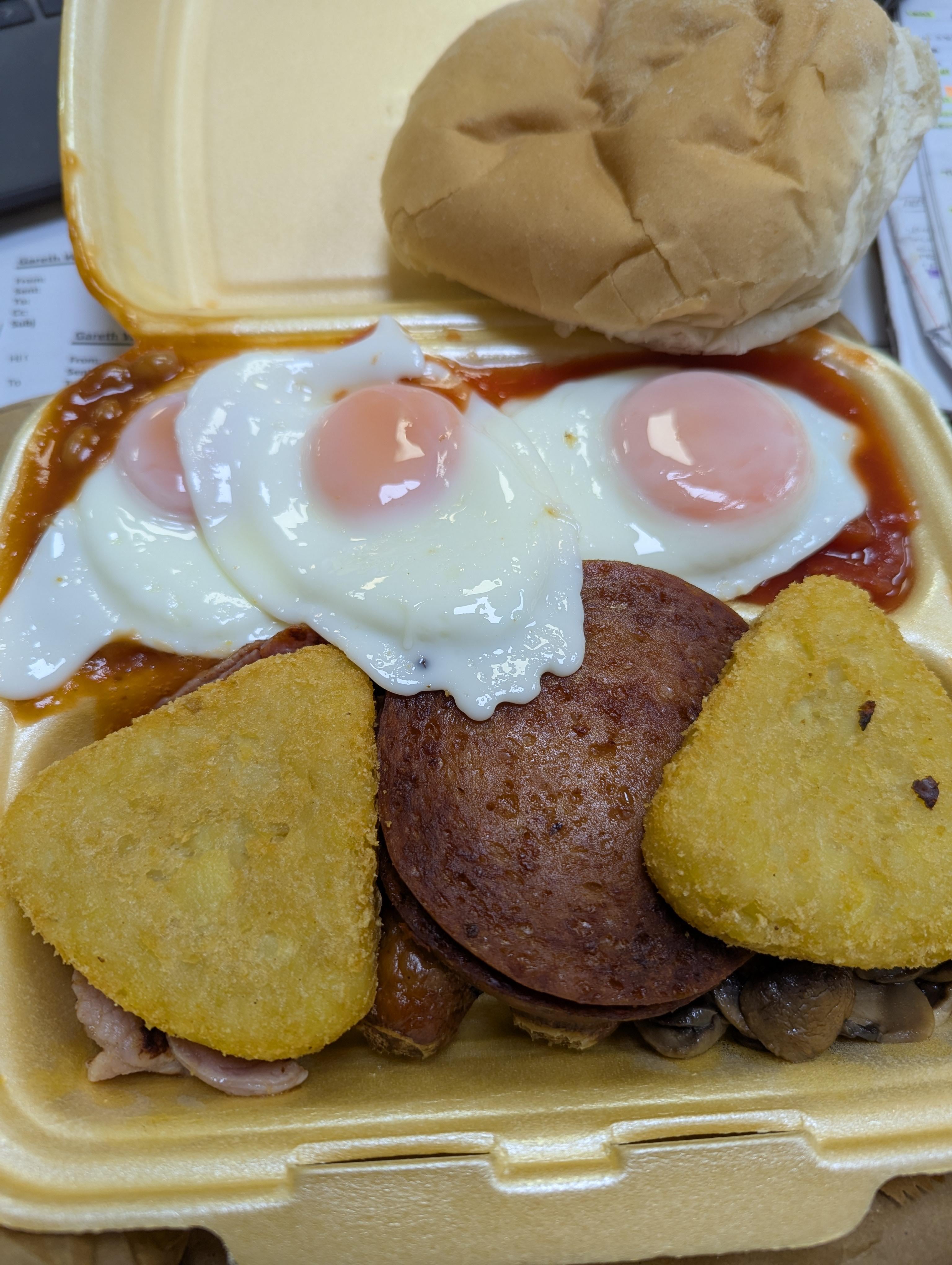 Saturday mornings we go to Oasis Sandwiches & Snacks, Bradford for the £5.80 Gutzilla breakfast. I swapped the black pudding for an egg because I'm not a fan before anyone comments on its omission.