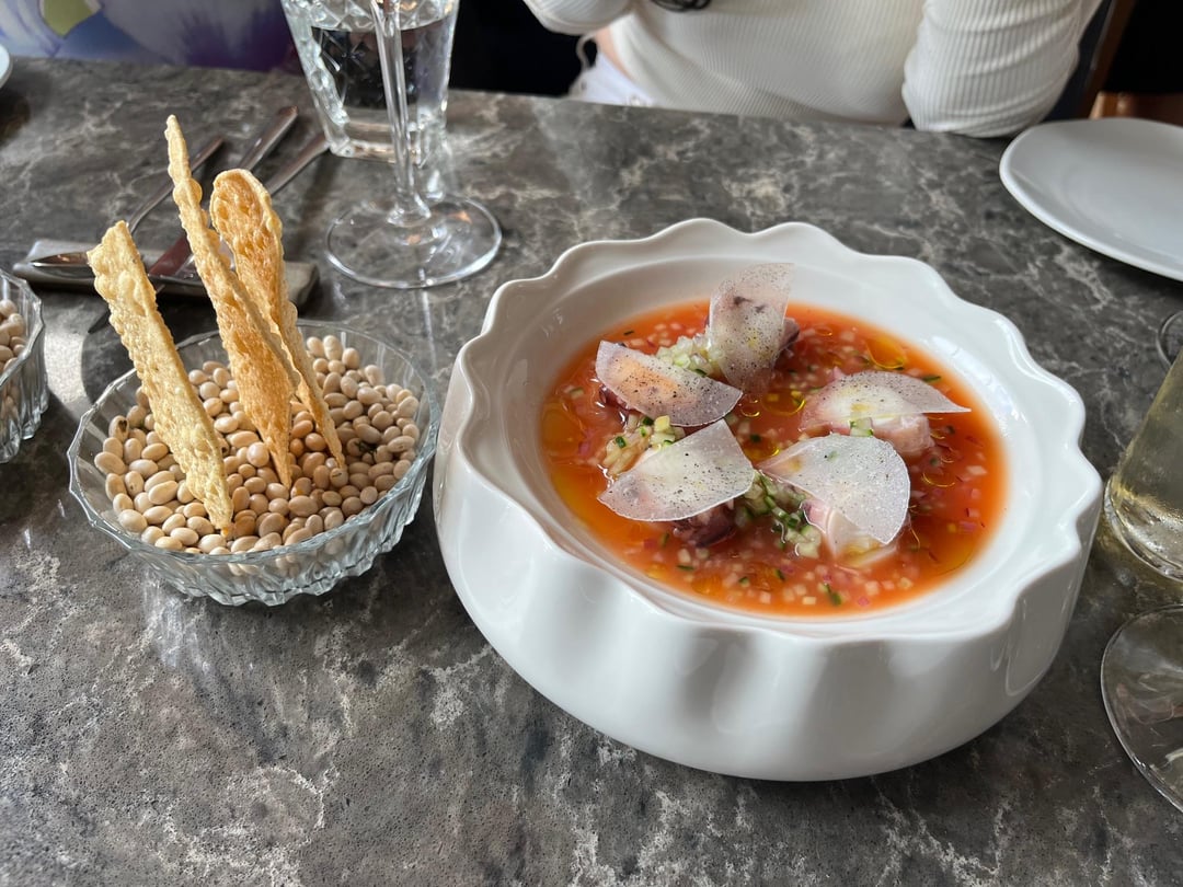 1) Off-menu item: Octopus, shaved radish, served in a tomato water, house tostada. Tomato water was bursting with flavour and hints of spiciness.