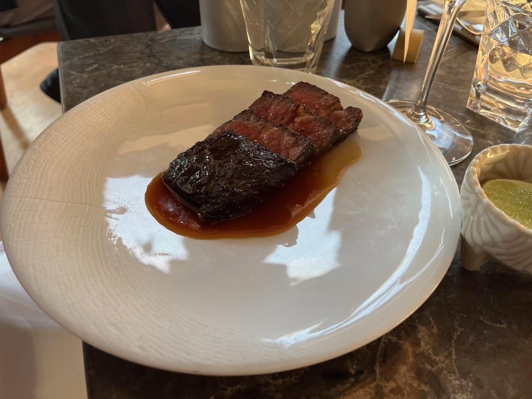 10) Main course: Snake River Farms Wagyu Zabuton w/ bone marrow salsa roja, grilled onion served with Sonora flour tortillas and condiments (not pictured). Rich and delicious. I tried the flour tortilla with it but if I had eaten the whole thing I probably would have eaten it without them.