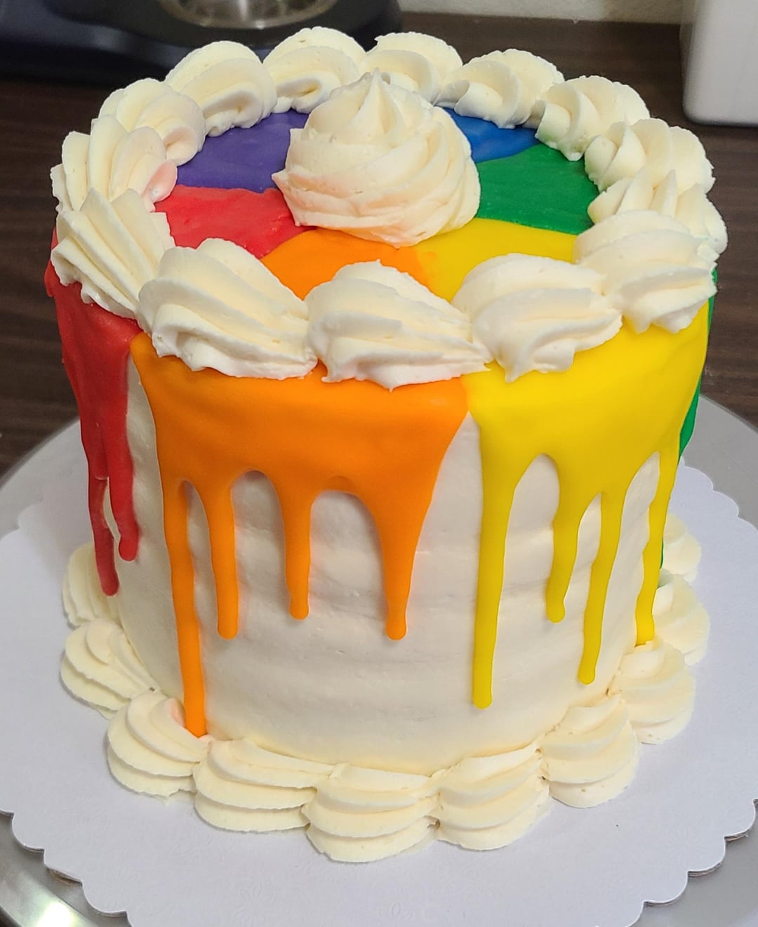 Beautiful 🌈 are the colors drips frosting or like modeling chocolate? You did a great job!