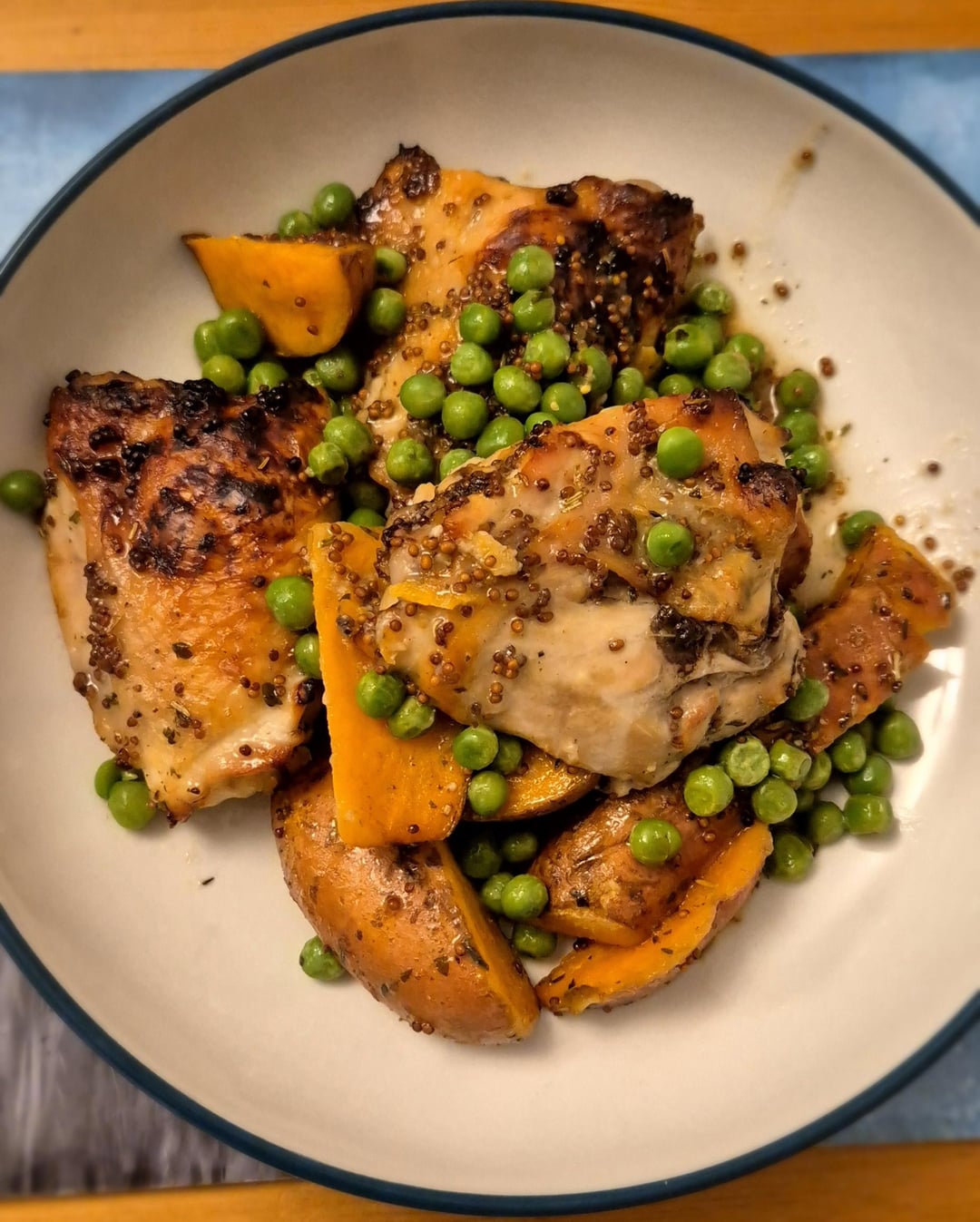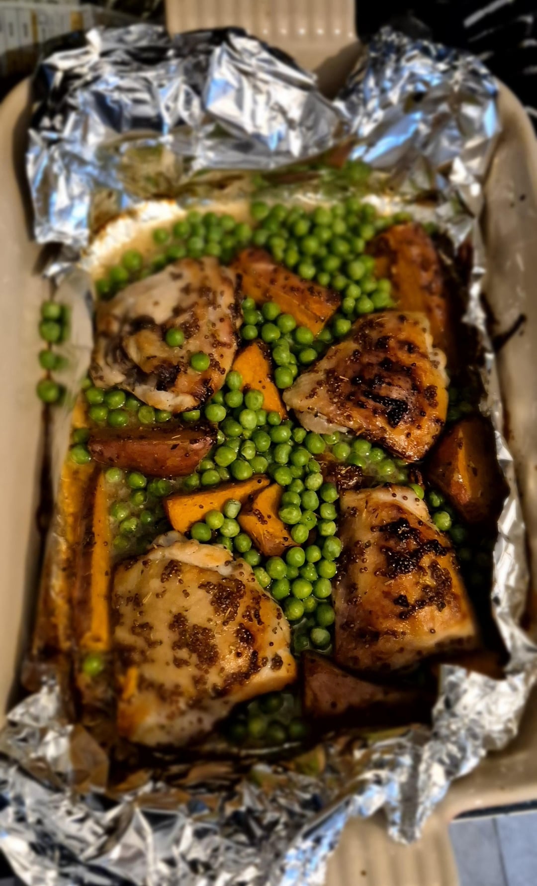 Honey mustard Chicken thighs, sweet potato and peasby Classic_Peasant Write A CommentYou must be logged in to post a comment.