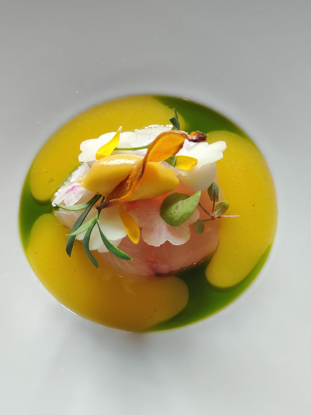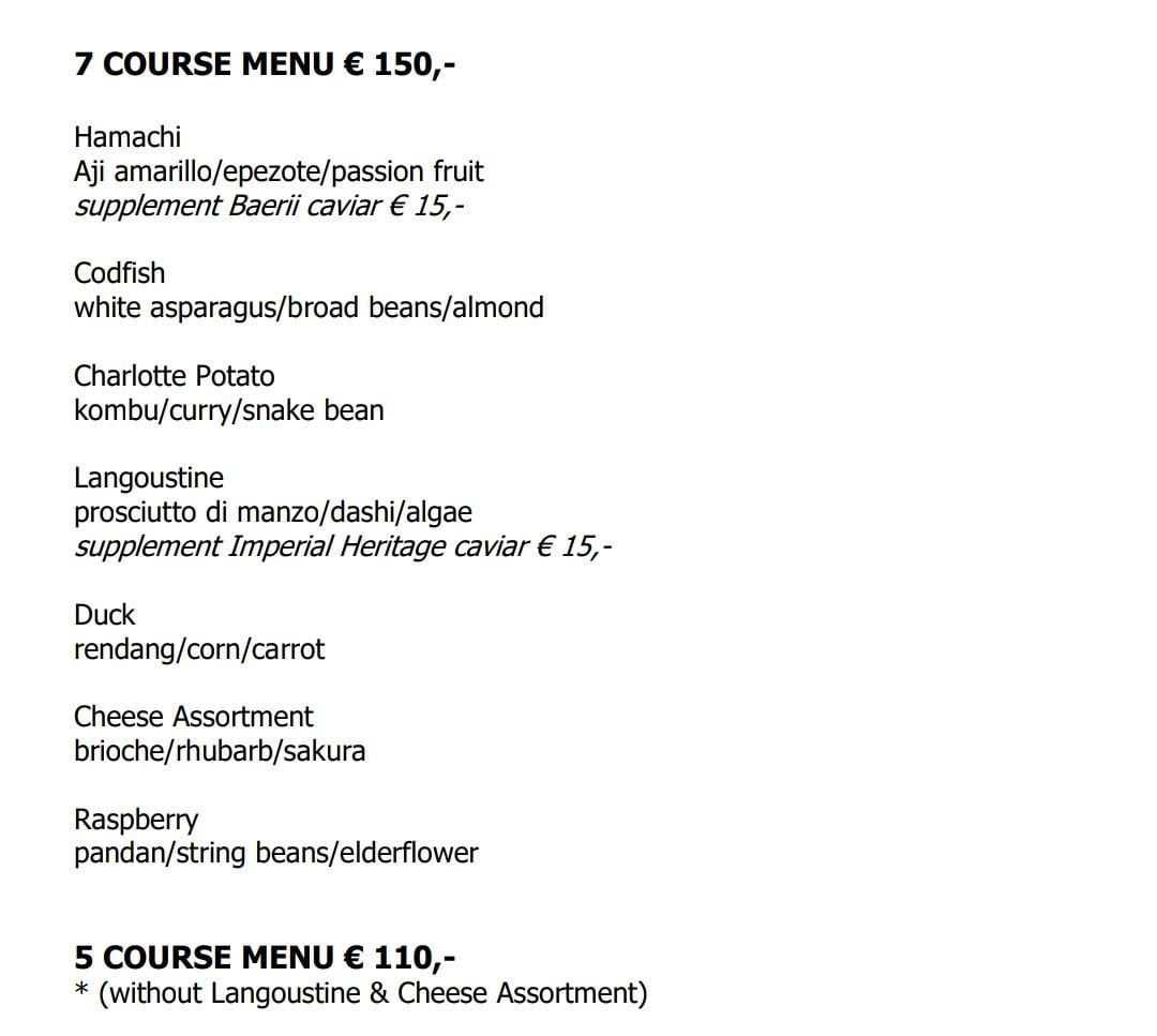 The chef was proud to include his Surinamese origins using the typical spice blend from that region, not in an overpowering but in a hinting manner. He mentioned one of the other sous chefs was from Indonesia and had also influenced a dish with a hint of rendang style food.