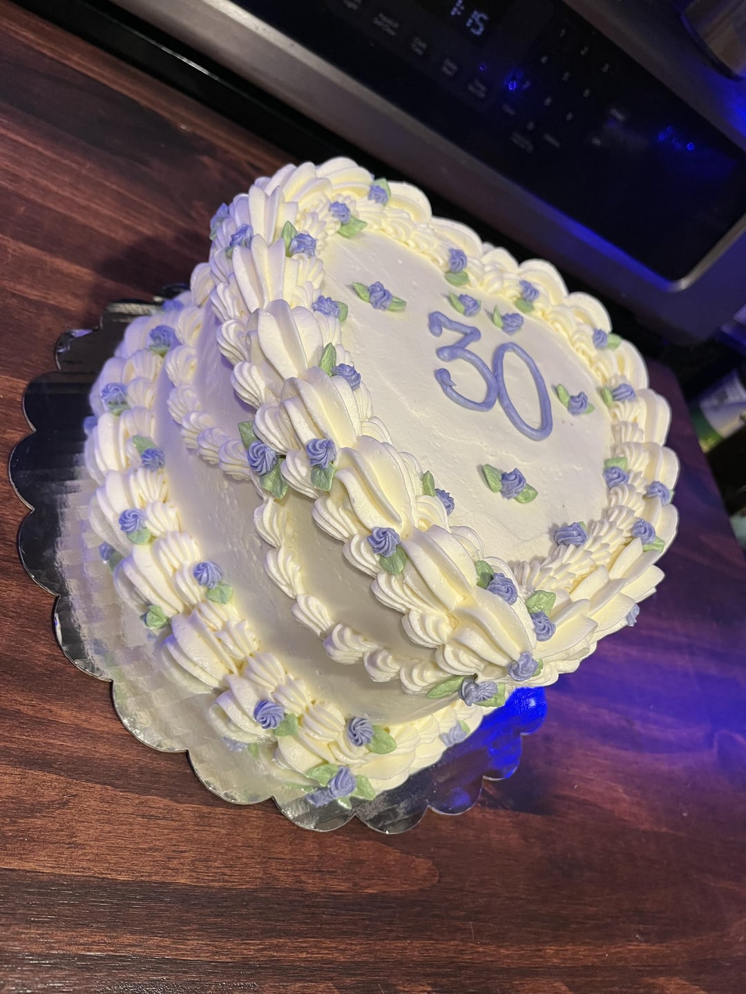 Happy 30th to me. White cake, dyed lavender, with a vintage style American butter cream by ETsMomma 2 Comments Alone-Introduction74 10 months ago It is beautiful 😍. You did such a good job, and I love the color and dainty decor. Happy birthday 🎂 Technical-Storm-9486 10 months ago Happy 30th birthday 🩵🤍 you did such a good job. Its beautiful.Write A CommentYou must be logged in to post a comment.