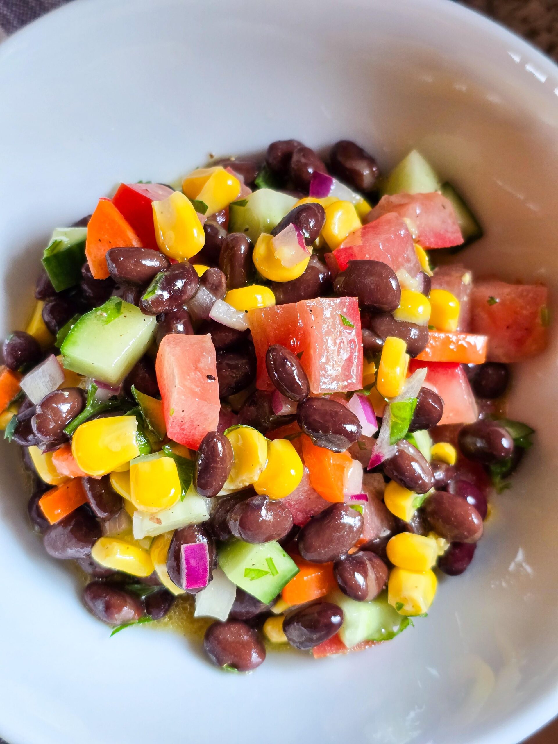 I make a version of this weekly. Allllll summer. I don’t like red onion Raw, so I get the pickled red onions from Trader Joe’s.