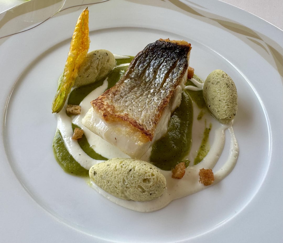 • Sea Bass with courgette cream.