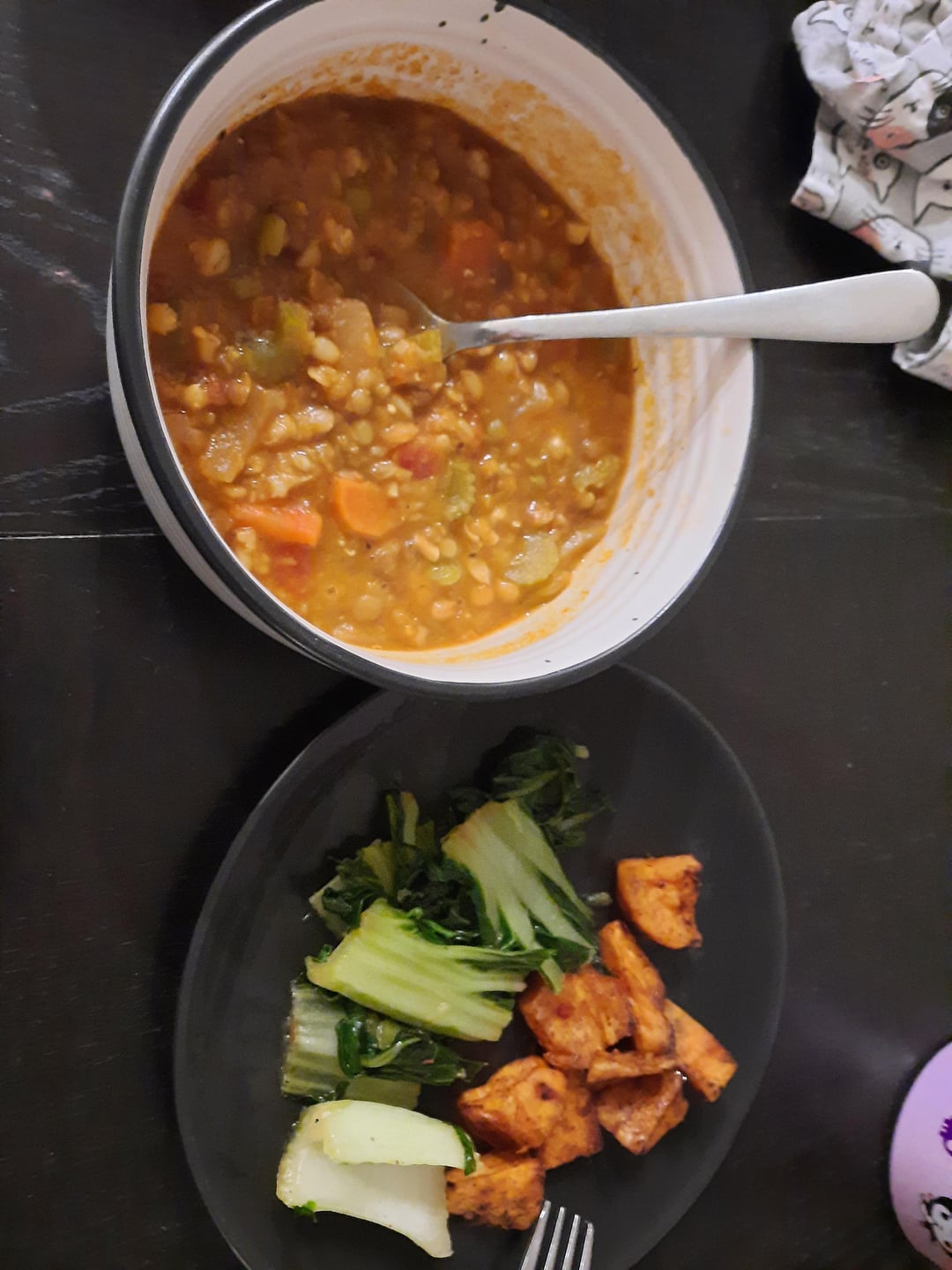 Some left over pak choi and sweet potato for one night too.