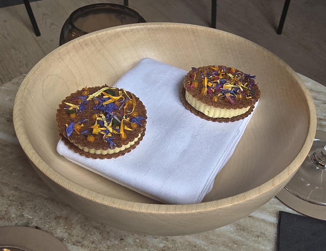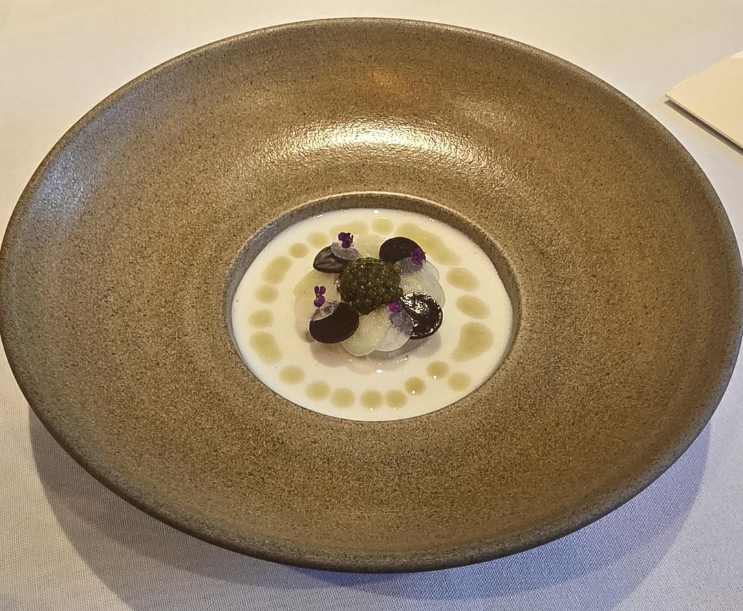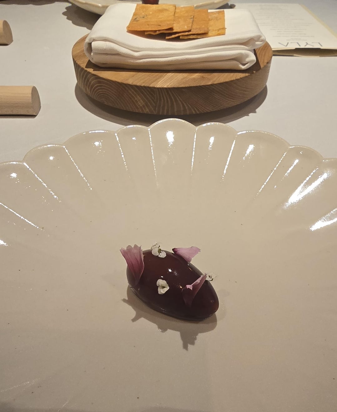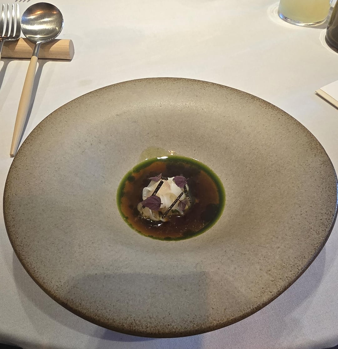 The space is upscale and well appointed. The meal starts upstairs in the lounge with a drink and some amuse. Afterwards led downstairs to the dining room with a view of the open kitchen. The aesthetic of the space is much more reminiscent of a 2 star. I assume they are going for 2 based on the totality of the experience and similarities to other 2's I have been to.