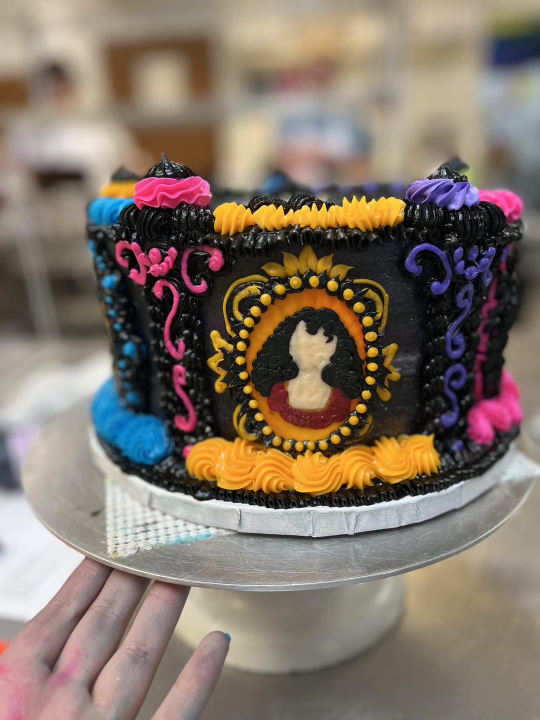 Beautiful piping work. The decorations look amazing I’d be scared to cut it and ruin it