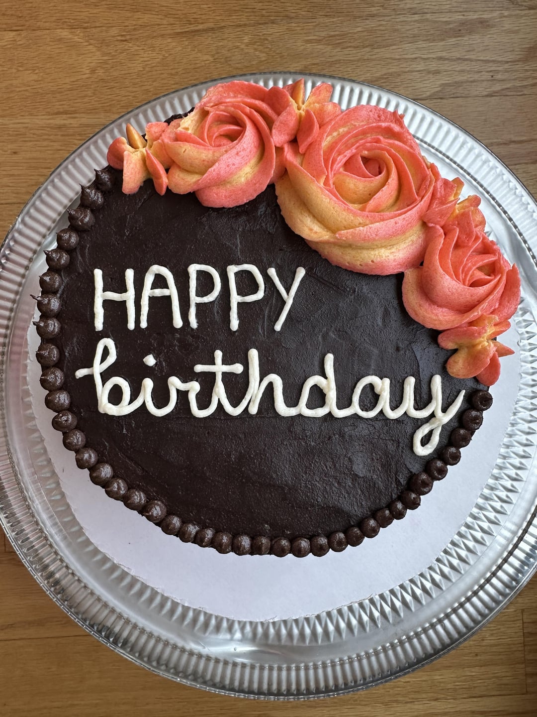 You did so good! This is great. Nicer than some of the professional cakes I’ve gotten with Happy Birthday too