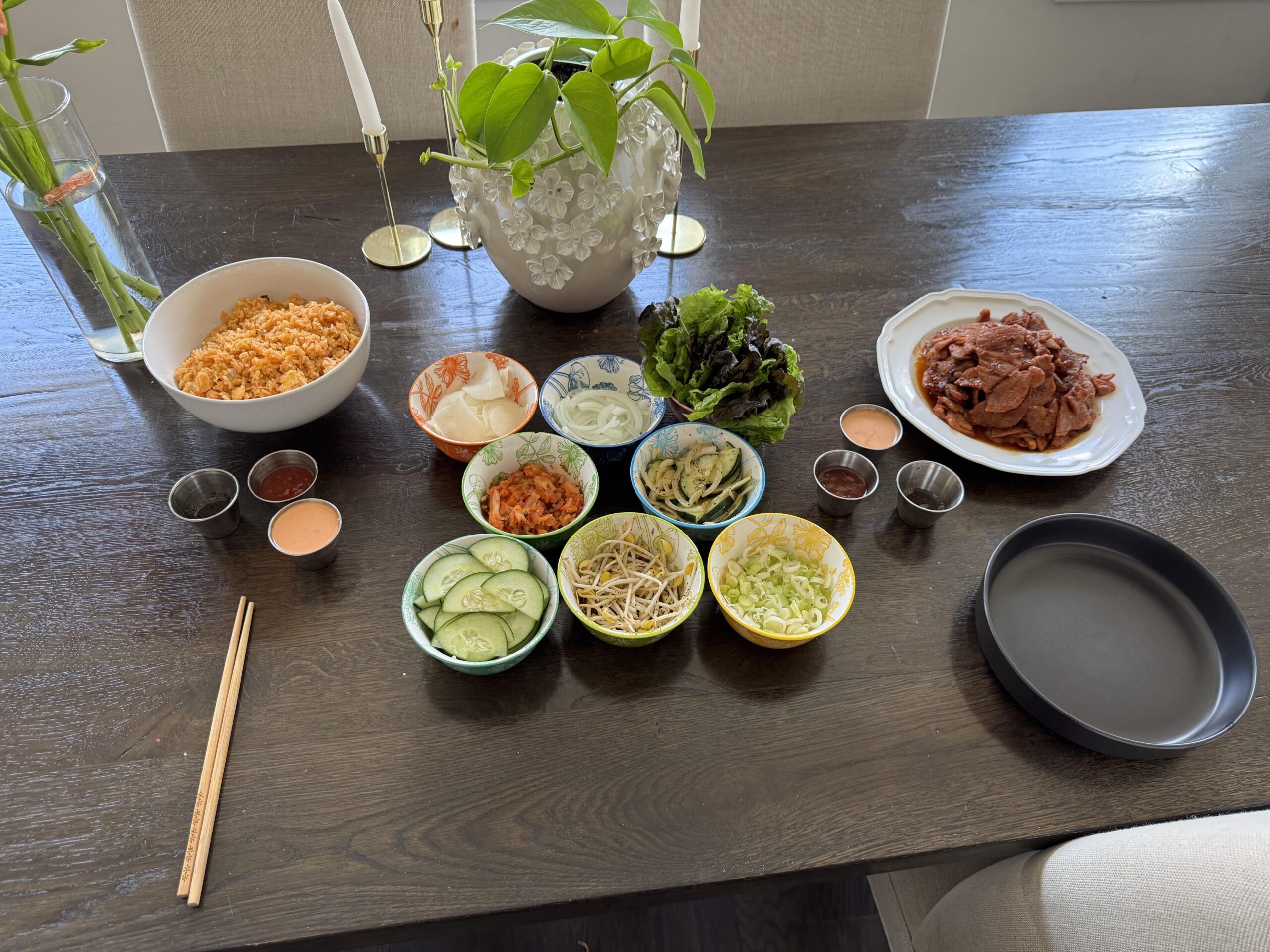 I tried to make some Kbbq at home and it turned out great! I had it wil some veggie sides and kimchi rice.
