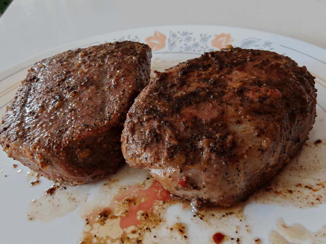 Dry brined over night with Kosher salt seasoned with black pepper garlic powder and keg steak seasoning put in the treager ironwood 650 225F super smoked till 115F took out foil tented till the treager got to 500F then seared with cast iron pan in the treager lid closed for about a minute a side and some butter in the pan.