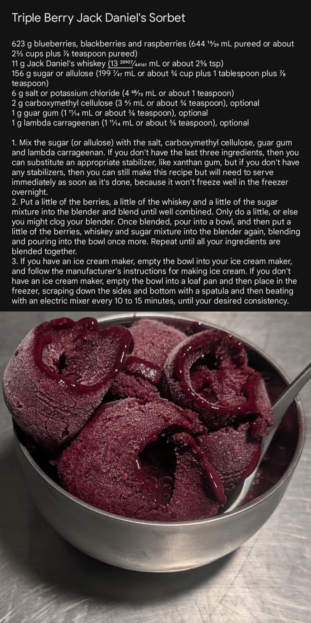 Triple Berry Jack Daniel’s Sorbet, recipe calculated, written and tested by me