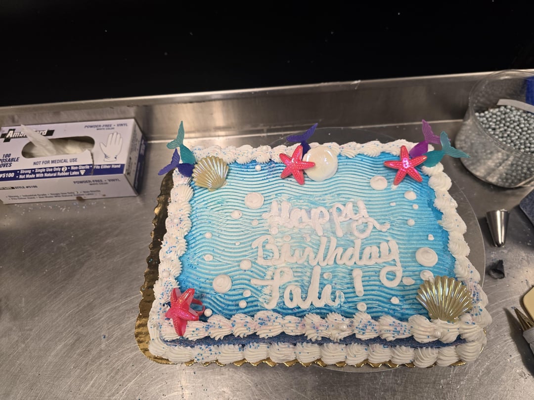 I've only been working at my grocery store as a cake decorator for 2½ weeks. My location haven't had one for 4 months lot of customers where weary until one lady asked to do a unicorn cake for her daughter birthday. I have a disability (deafblindness) and she took her chances now I've been getting non stop unicorn cake orders 😅 I decorate unicorn shark(soon dragon) cakes for our case