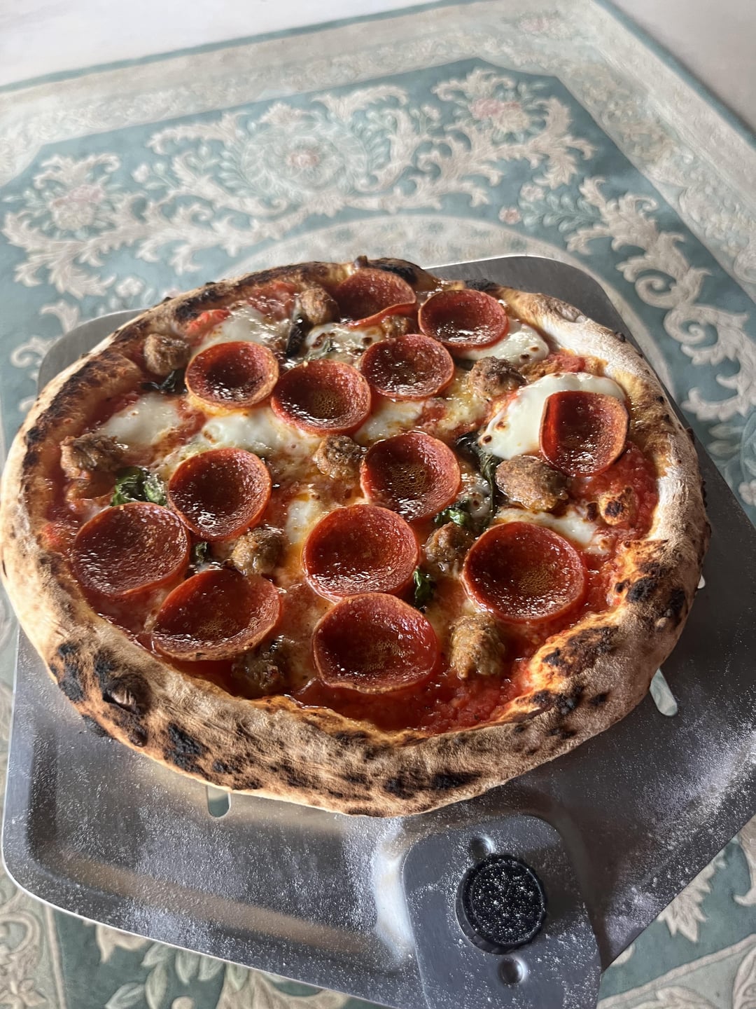 At this point it’s definitely an addiction. Roccbox action. 750 degrees. 1 margarita, 1 olive and anchovy, 1 olive and arugula, 1 pepperoni and sausage and a cheese. Delicious!!!!!!!
