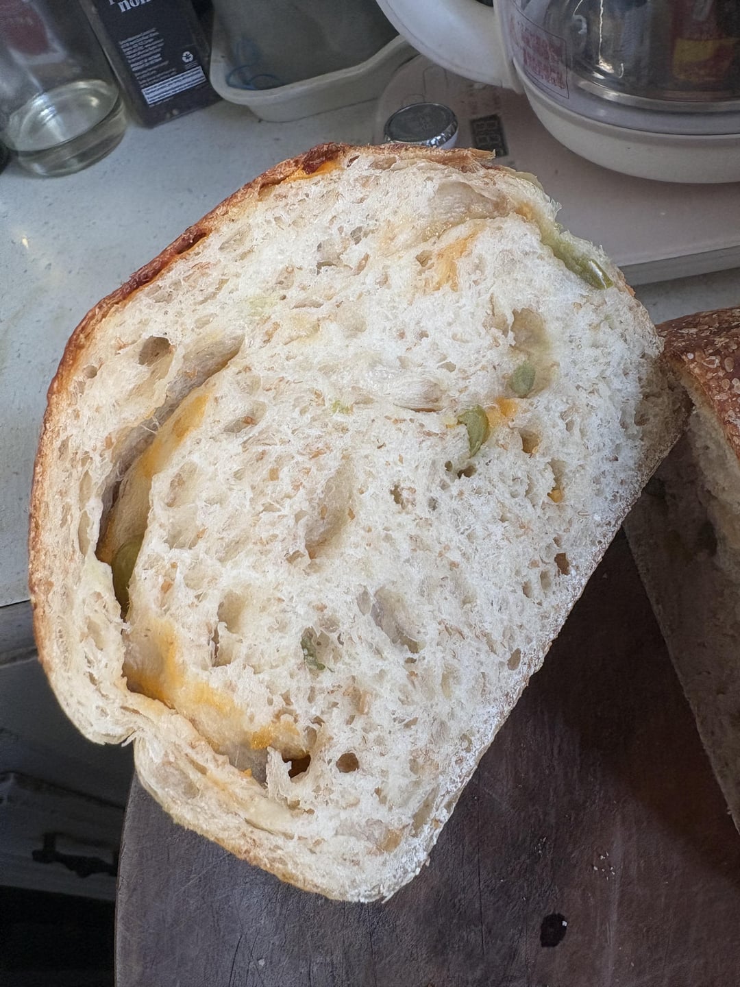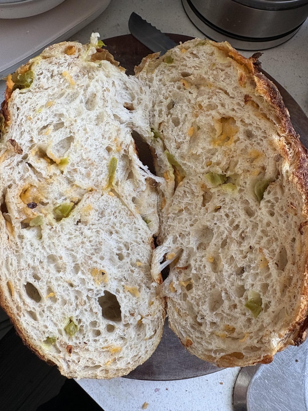 Baked up some beautiful loaves today (plain and jalapeño cheddar)!! Thinking about doing an Asian-inspired chili oil cheddar loaf next… 🤤