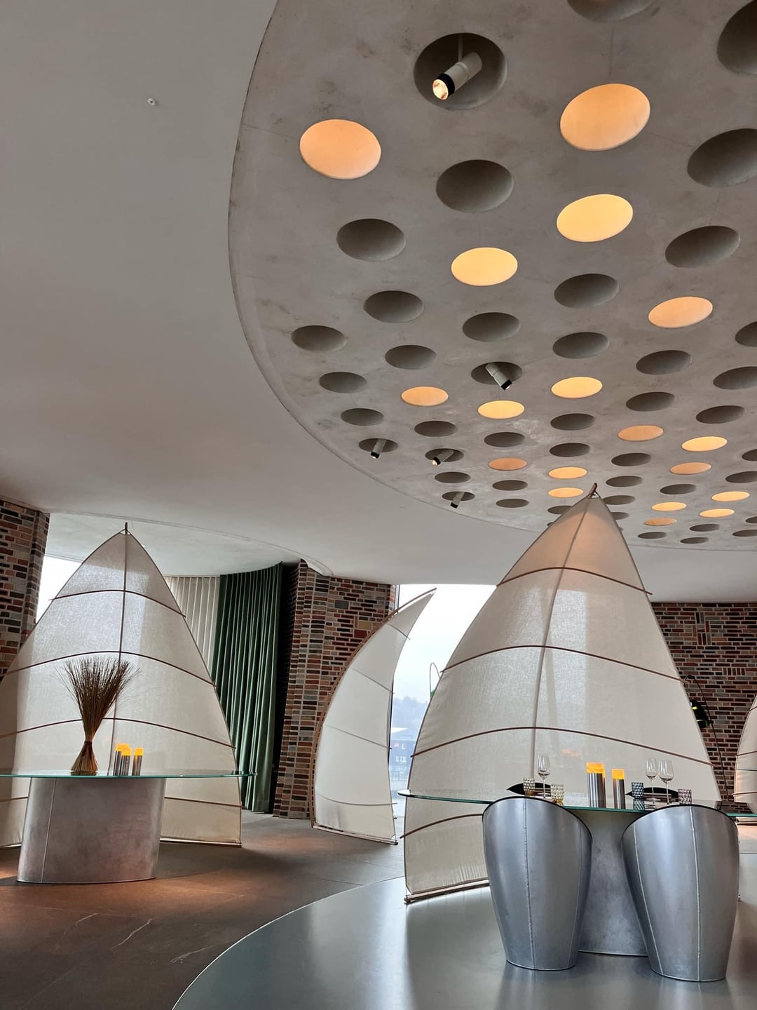 Afterwards, we took our seats in the main part of the restaurant in extremely comfortable chairs, with ample space between tables and partially shielded by what resembled sails from a ship. From time to time, the staff would push these sails to illustrate the wind – mostly a gimmick, but it did make the guests smile.