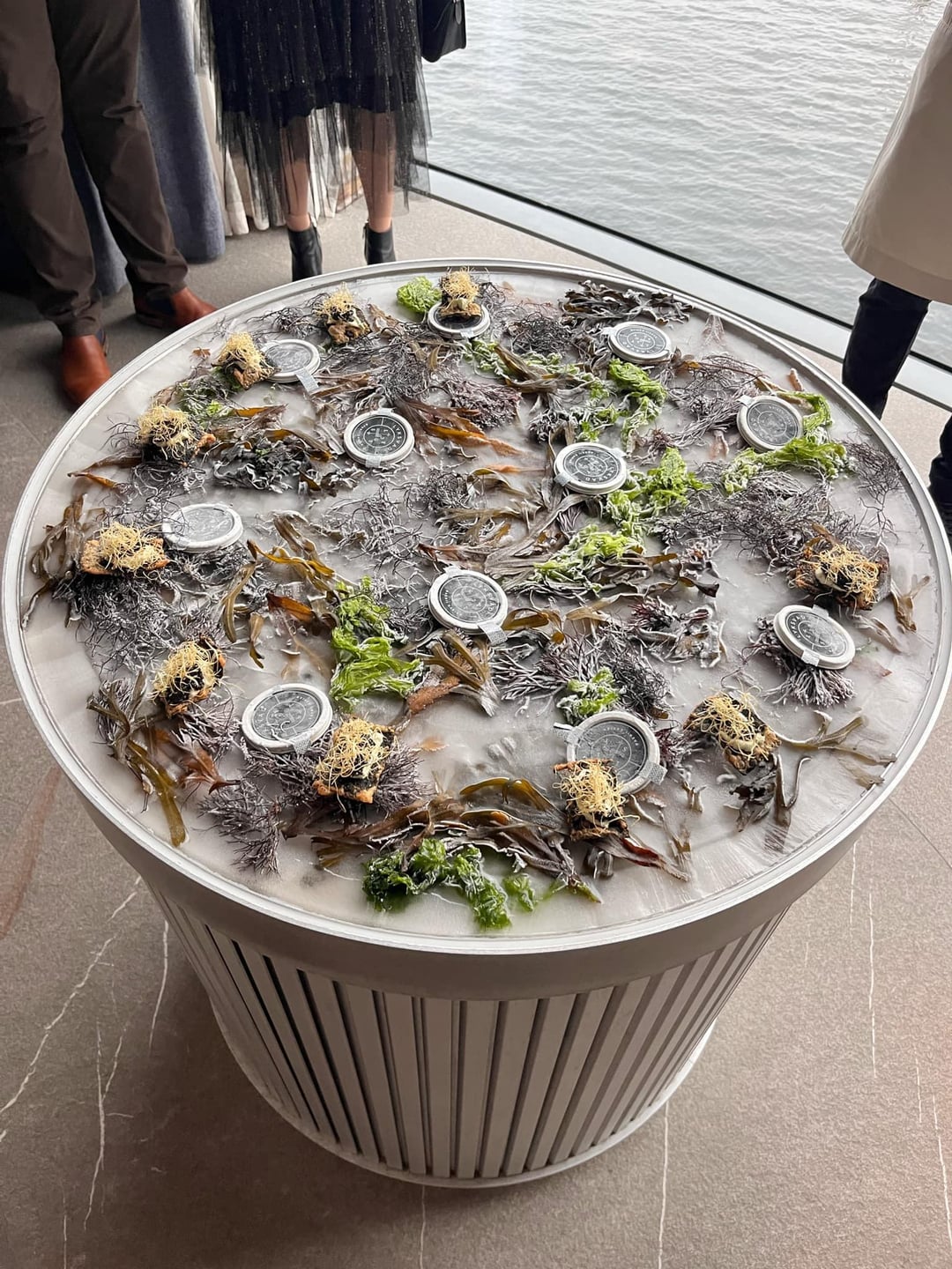 Next, we had a brief detour to the balcony overlooking Vejle Fjord – here, Danish caviar on local seaweed was served, and it was one of the highlights. The freshness and light salty flavor made it some of the best caviar I have tasted.