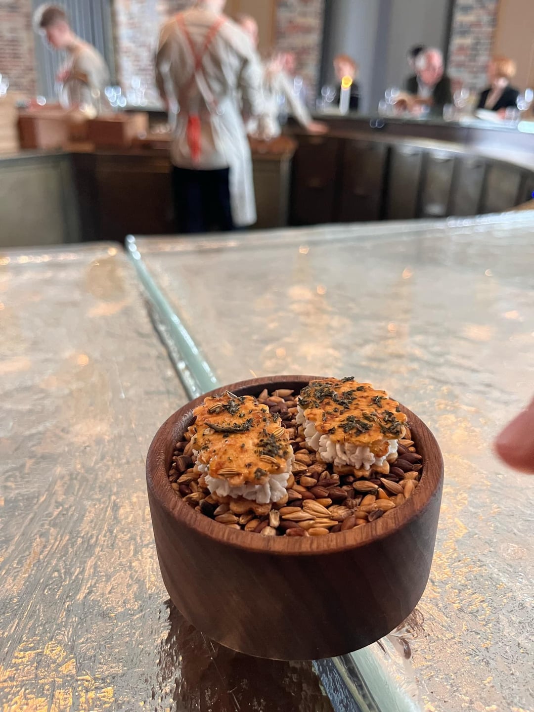 My visit took place in November 2024, which clearly influenced the dishes. As you will see, it was not a feast of vibrant colors and blossoming vegetables, but rather a true reflection of the Danish season – root vegetables, fish, shellfish, and game.