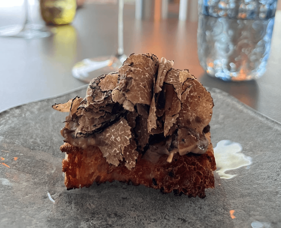 Here, I want to mention the highlights, which were lightly seared Danish tuna, grilled Danish blue lobster with wasabi hollandaise, chawanmushi, and a sourdough toast with Danish mushrooms topped with something as exotic as Danish truffles. All of these dishes were at least 2* level. Unfortunately, there were also low points, the worst being the dish with baby squid in a sauce/soup of browned butter and melted cheese. It was far too rich, and the squid was completely overpowered by the taste of butter and cheese. The idea was probably for the squid to function as a kind of pasta, but the dish simply did not work and was the ultimate low point of the evening.