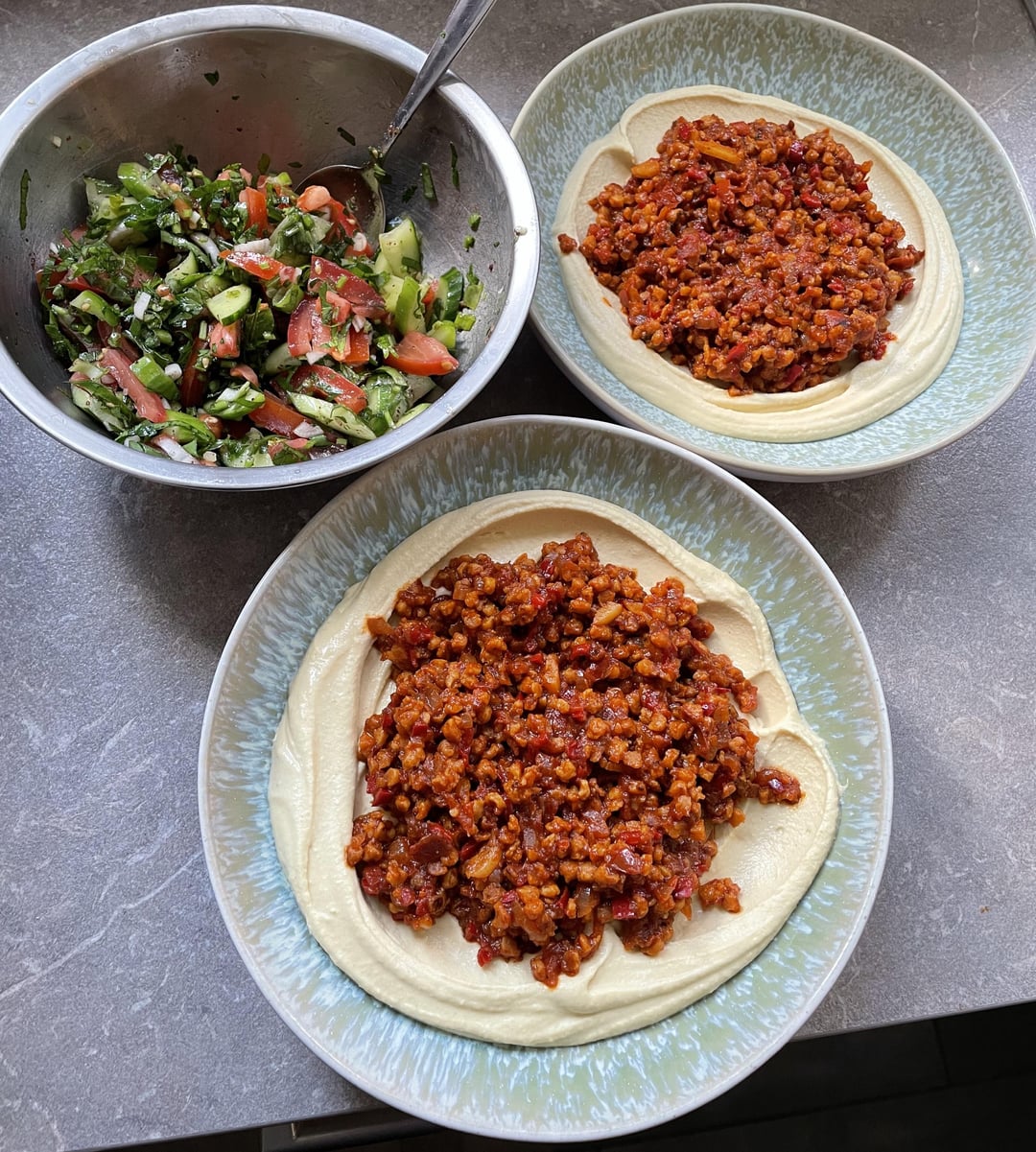 Made hummus topped with TVP in a spicy tomato and pepper sauce, veggie and mushroom skewers, a tomato cucumber salad and homemade bread. by frankenstein-victor 3 Comments brightbee1111 7 months ago This looks unbelievably good! Due_Peace_5131 7 months ago Wait, whats TVP? This looks amazing! good_tastes 7 months ago This looks unbelievable!! Those pitas look so fluffyWrite A CommentYou must be logged in to post a comment.