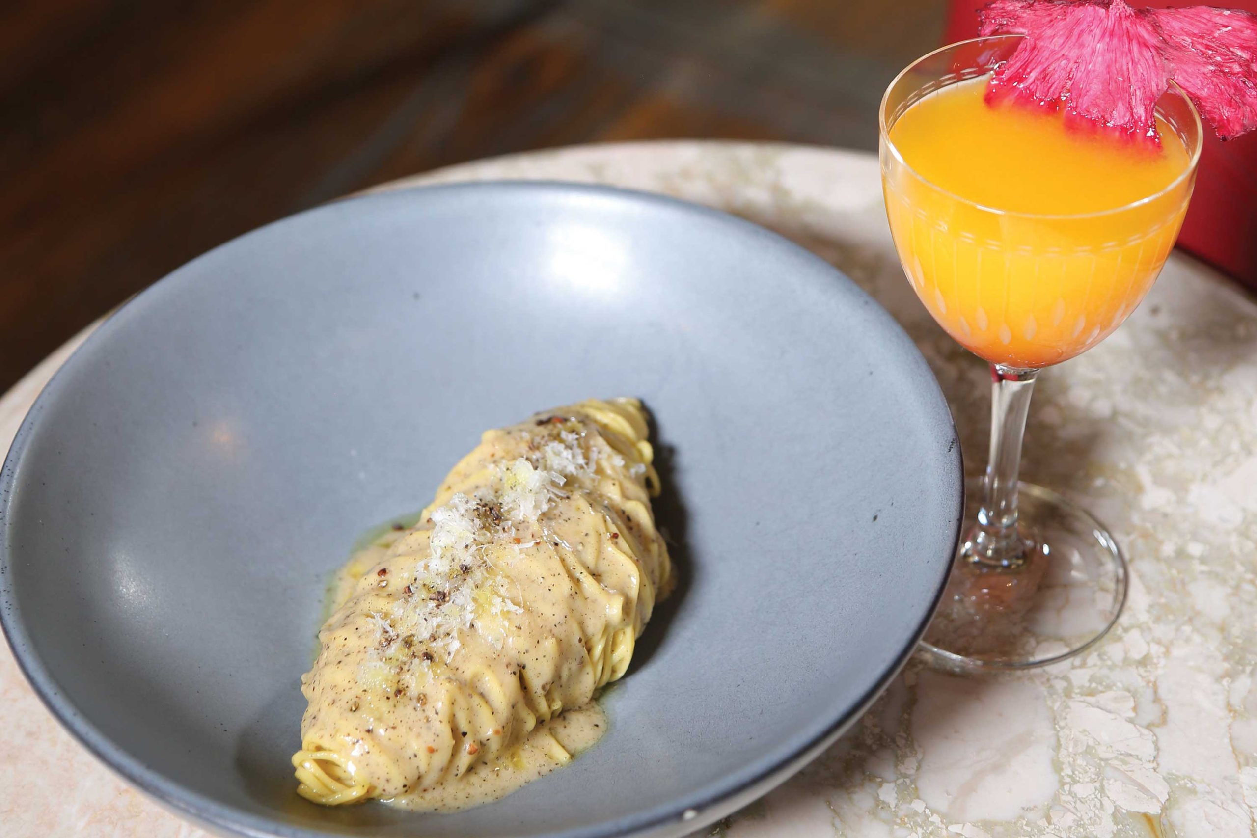 Adding a non-traditional spin, the cooks at Pizza to the Rescue (2601 E. Indian School Rd., Phoenix, 602-314-4832, pizzatotherescuephx.com) garnish the dish with grated house-cured egg yolks. “It adds a nutty, umami flavor,” says general manager David Reali. Each plate of cacio e pepe ($19) is cooked to order using handmade pasta, pecorino Romano with a dash of aged Parmesan, cracked black pepper and a little butter to “pull everything together,” he says. Many Italian restaurants use tonnarelli, a thick, square-cut spaghetti, but Pizza to the Rescue opts for bucatini, a thick, tubular spaghetti that adds another level of texture. “It’s like a straw, so you have a little bit of sauce that creeps into the pasta.” While most folks go to this dog-friendly spot for the pizza, the made-in-house pasta also deserves a walk.