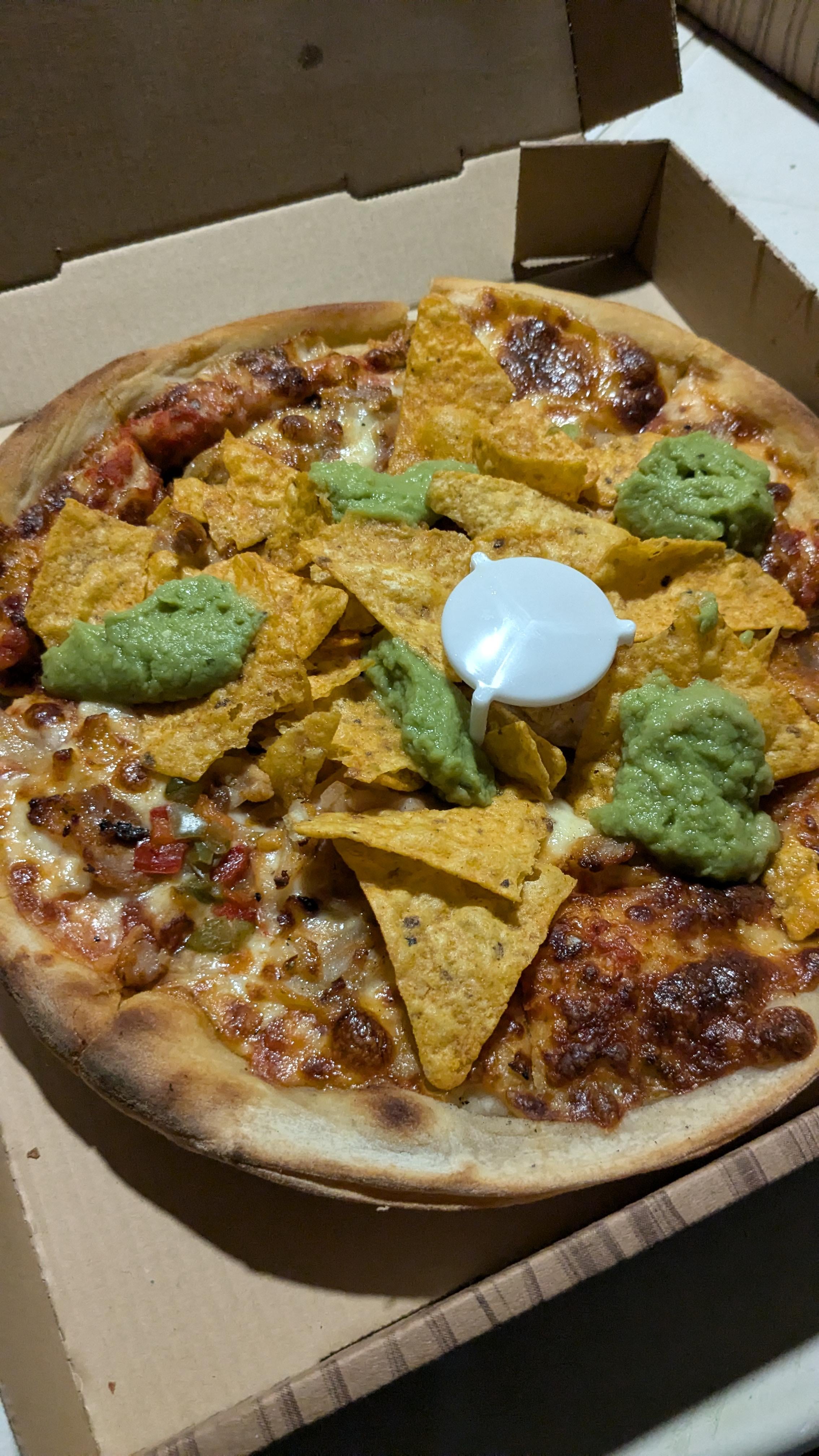 My local independent pizza place did a “Nacho” pizza for a while, albeit without the chips. It slapped. This one doesn’t look as appetising, but the concept is solid.