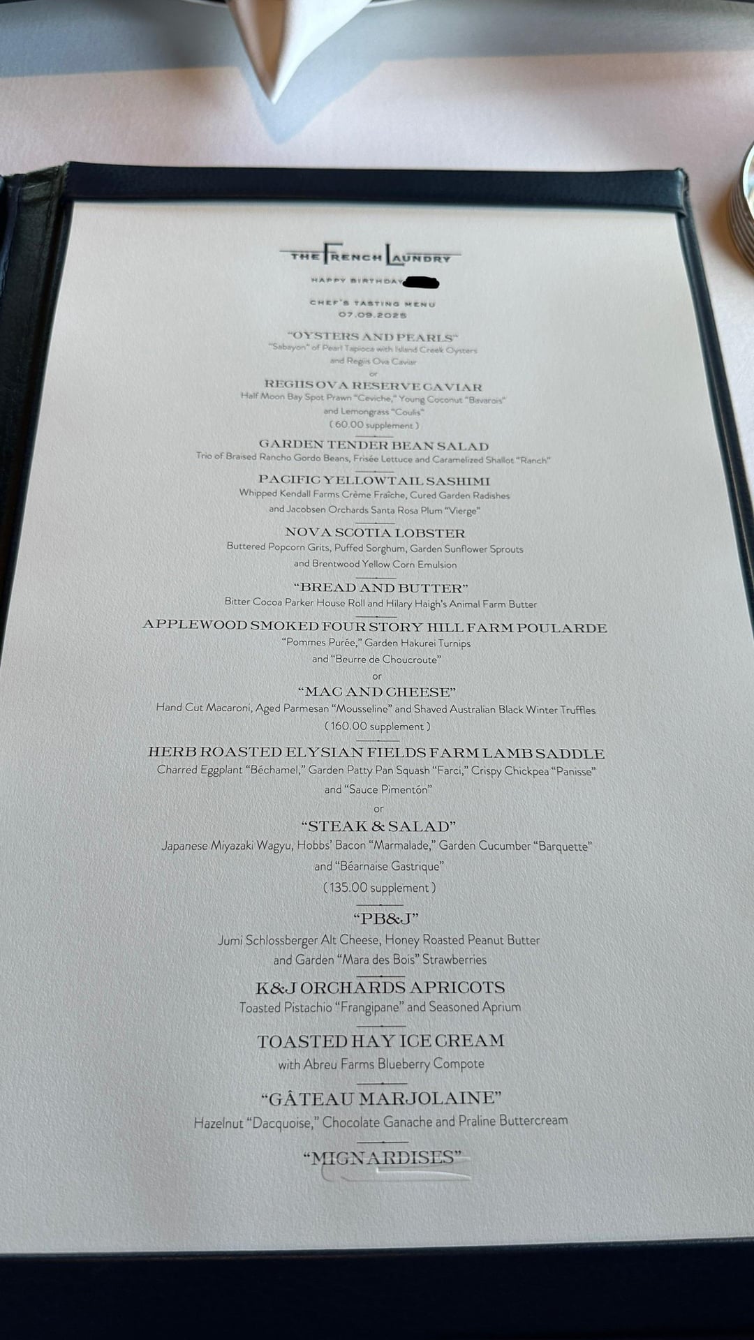 My wife and I dined at The French Laundry for her birthday while we were in the Napa area.