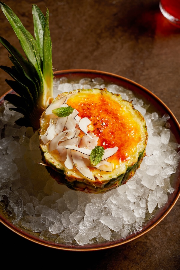 When is completely cold mix till creamy texture and pour it onto the pineapple compote into the pineapple cup.