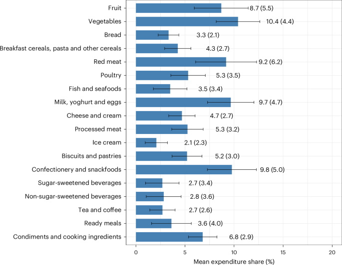 Household SES was categorized using the Index of Relative Social Advantage and Disadvantage (IRSAD) as defined by the Australian Bureau of Statistics38. This index summarizes the economic and social conditions of households living within a particular area by considering a range of indicators, such as income levels, education levels, employment rates and housing. To maintain household confidentiality, NielsenIQ does not provide the exact IRSAD score of each household, but instead aggregates IRSAD scores into deciles. Using these scores, we classified households into socioeconomic quintiles (that is, Q1 referred to IRSAD deciles 1 and 2 and Q5 referred to IRSAD deciles 9 and 10).