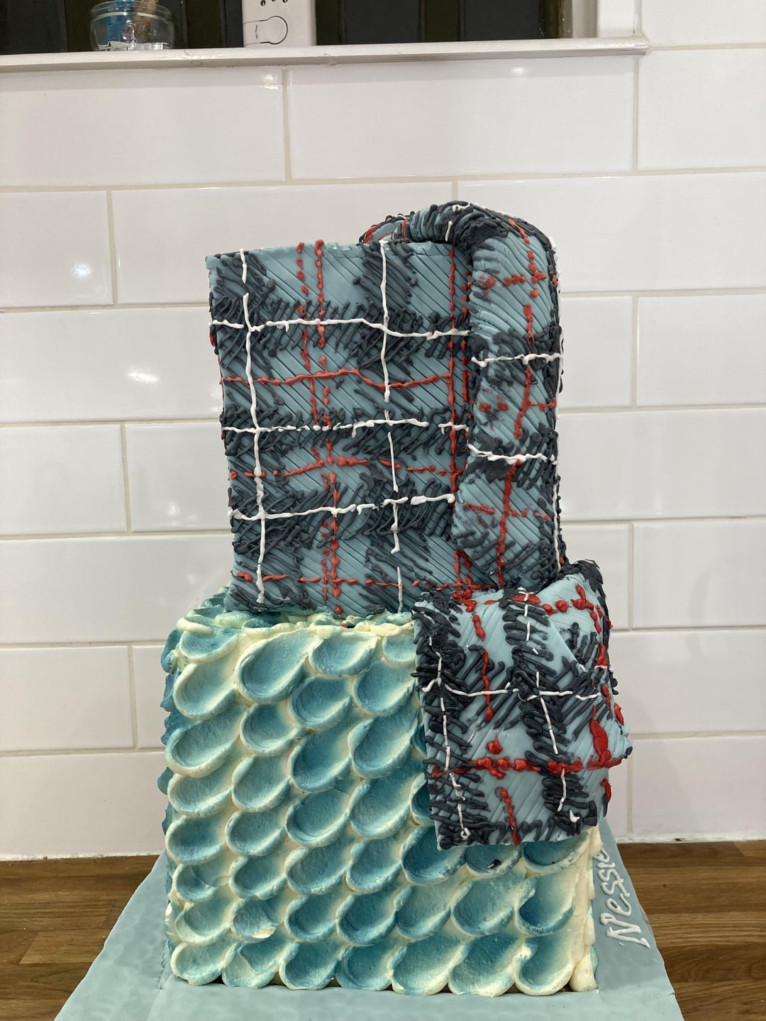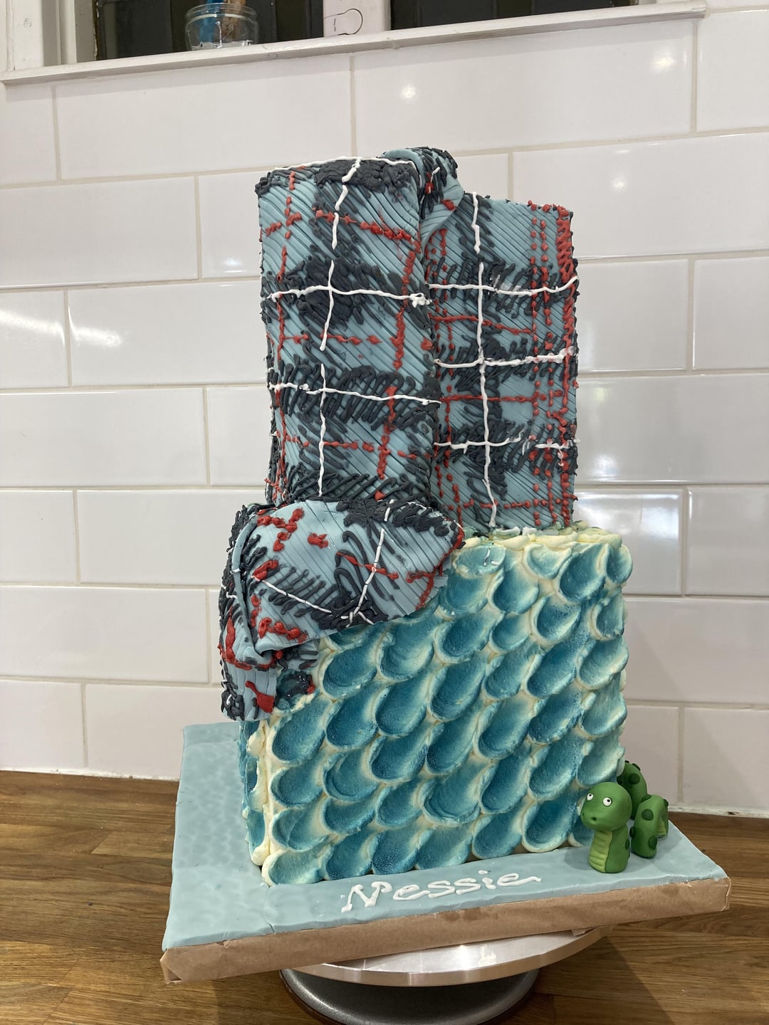 The brief was a Loch Ness inspired 50th birthday cake. I had always wanted to try tartan but I couldn’t quite bring myself to give it a go.
