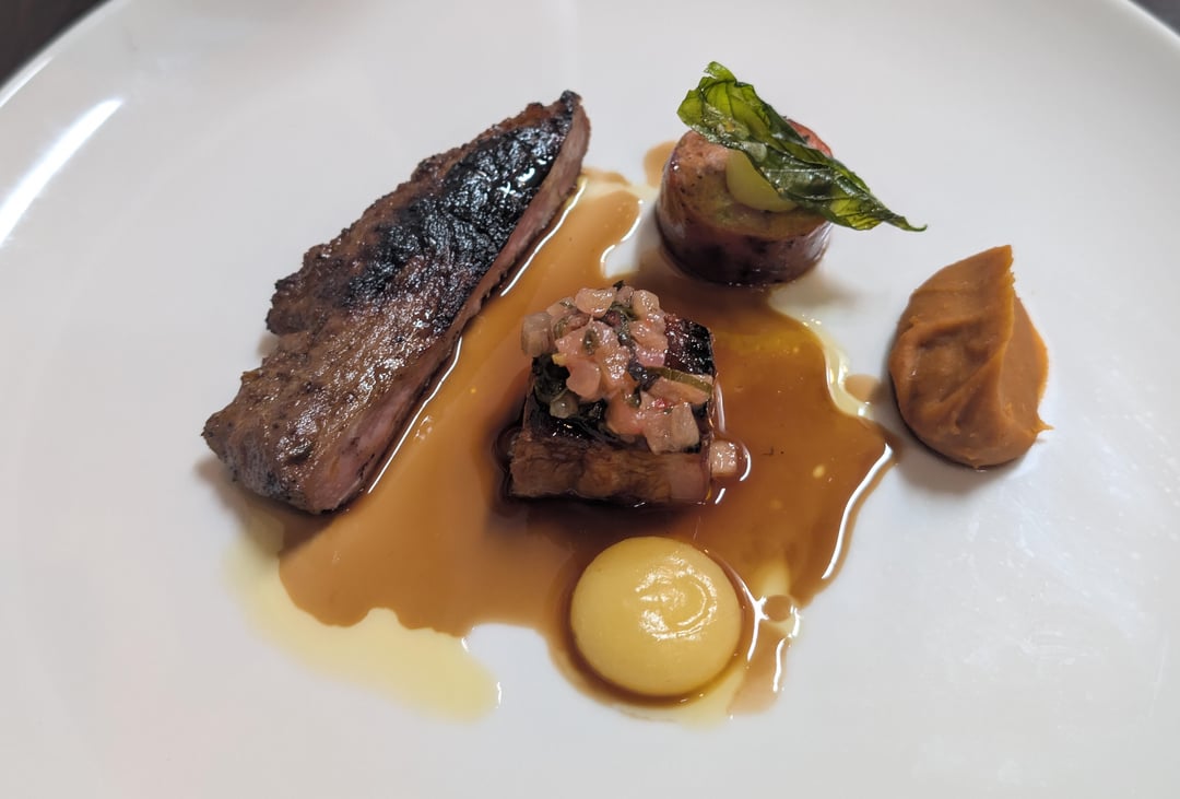 Iberico fillet cooked nicely, great sausage and belly. Hit of spice, balanced sweetness from the pineapple