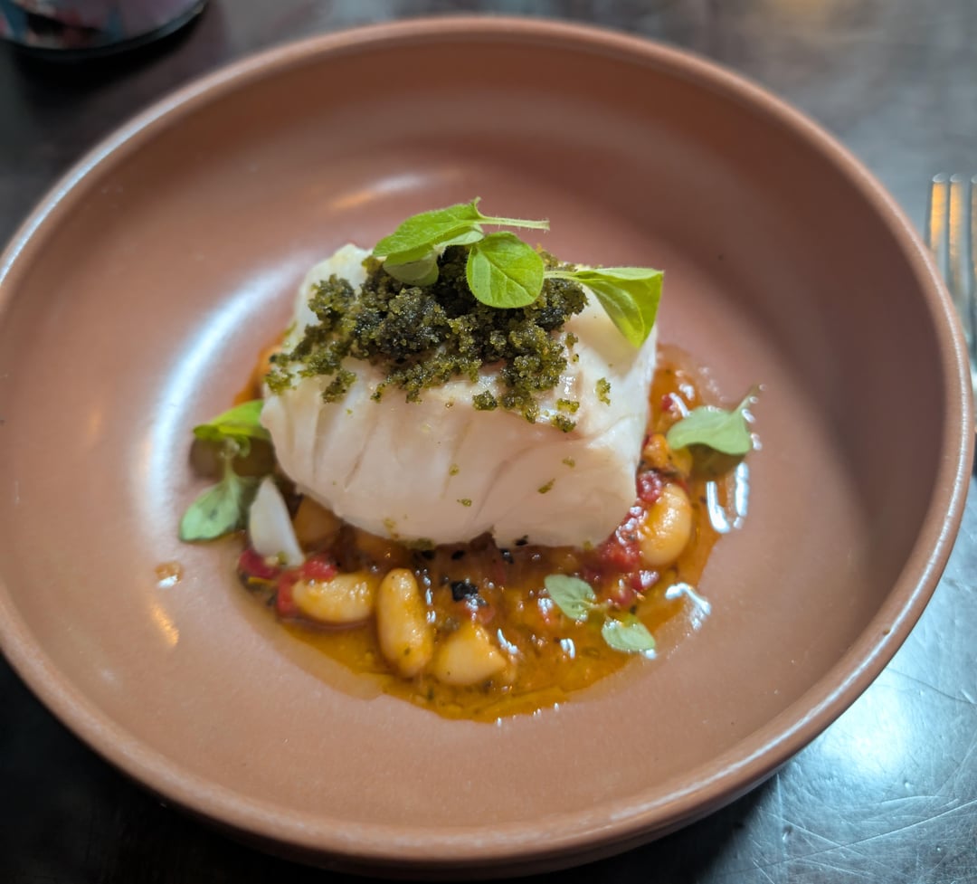 Perfectky cooked fish, nice herbaceous crumb and flavourful sauce. A touch under seasoned but tasty