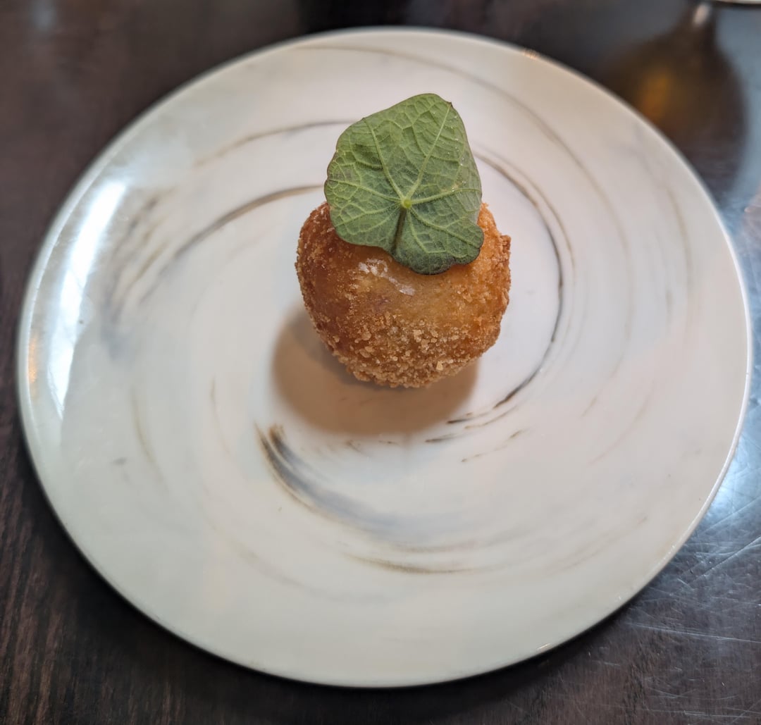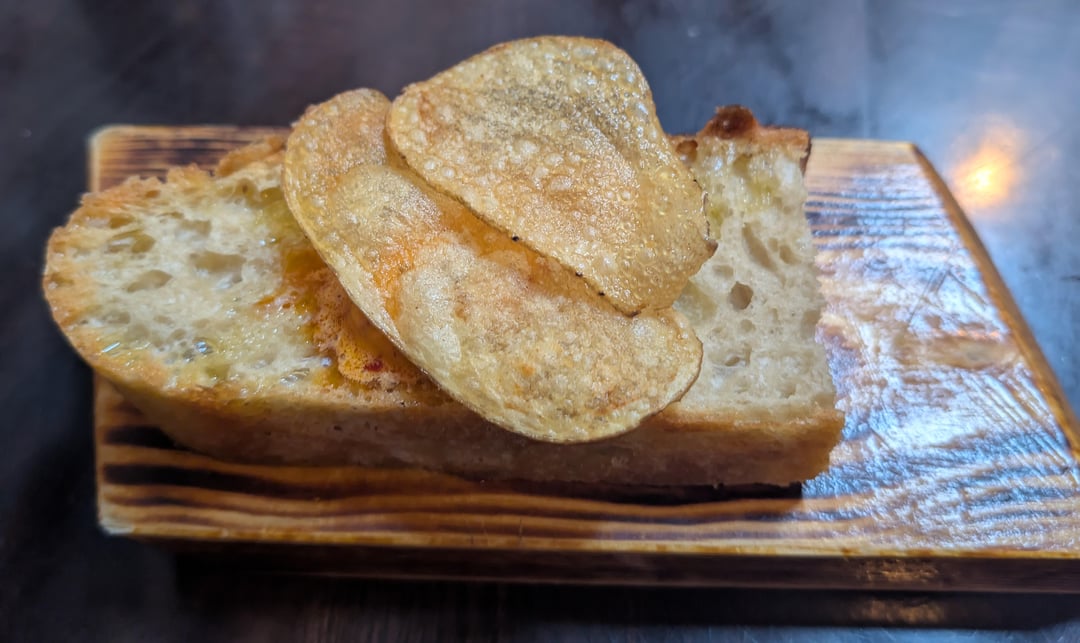 Nicely spiced butter, offset by a lime hit. Lovely bread, crisps added a texture difference