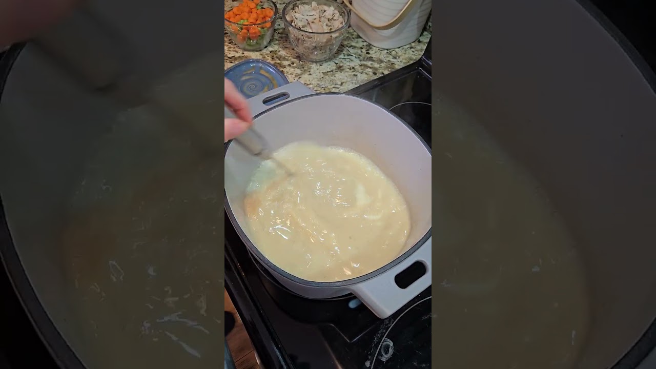 hello everyone welcome to my kitchen it is Colleen here and today we are going to make Greek lemon chicken orzo soup so we have six cups of chicken broth here and we are going to bring it up to a boil our chicken stock is boiling so now we are going to add 1/2 cup of orzo and you’re going to cook this 2 minutes less than what the package uh directions say so this orzo is going to cook for 7 minutes our orzo has been cooking for 7 minutes turned down the heat to low and now we’re going to get ready to finish off the soup so in my bowl I have two eggs and one egg yolk 3/4 of a teaspoon of salt and 1 teaspoon of pepper and you’re just going to whisk these together and then you are going to whisk in some lemon juice the recipe calls for five tablespoons um we found that was a little too lemony for us so I’m going to do three and then to this we are going to add let’s move some things around we are going to add one cup of our broth because what you want to do is temper the eggs be before you put them in the really hot soup so I’ve got about a cup here and we are going to just you have to whisk constantly did I say whis or whisk so this is tempering the eggs so it’s kind of precooking them before we put them in the soup now I should have probably gotten rid of some of the orzo you can see it in there that’s okay and now we are coming back to our soup and we are going to to put in our egg mixture and you also want to whisk this in constantly so we’re going to just start pouring it in and whisk it just like this then um we’re going to add hold on I’m trying to remember okay so we’re going to put in our chicken I was trying to remember what went next so this is about a cup and A3 of rotisserie chicken and my dogs are real excited right now I’m actually going to switch utensils so all this little chicken doesn’t get caught in my whisk so I think I’m just going to use an old mix and scraper here so we’re going to stir in our chicken and then we are going to put in our vegetables a cup and a third of peas and carrots now it calls for frozen I didn’t have I only have frozen peas so I had a few leftover carrots so I cut those up so the carrots are fresh the peas are Frozen the whole purpose of this recipe is to have this be as simple as possible so rotisserie chicken orzo your chicken stock frozen veg you can do fresh if you want but it is a super simple recipe to make it’s got the orzo in there this is going to heat through maybe another 5 10 minutes just going to keep an eye on the temperature and then we have our super duper Greek lemon chicken soup thanks for watching you guys are always welcome in this kitchen