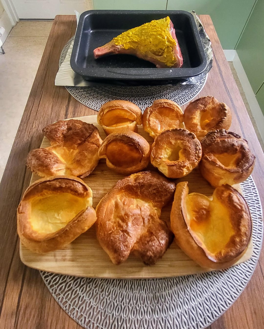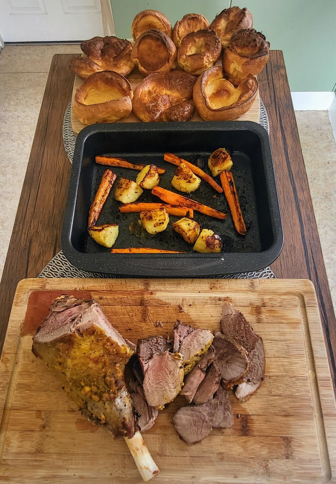 Totally forgot to buy rosemary (like a plum), so improvised with garlic and mustard. Mint sauce on the table for those that need it.