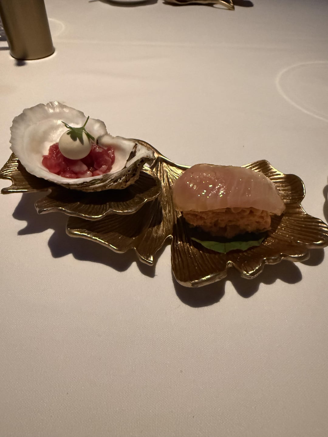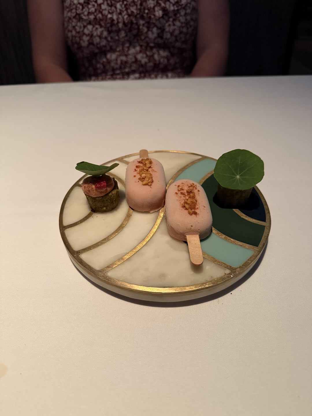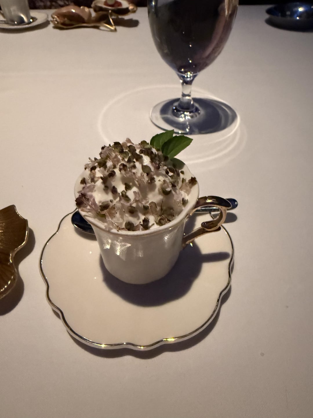 I’ve heard lots of mixed things about the foie gras popsicles but I love them. I think they are buttery and sweet with a perfect Thai banana center. The shell on the outside is smooth and delicious. My favorite of the two was the little bites on the outside. A financier with strawberry. So simple yet so amazing. I loved this course but wasn’t one of my favorites.