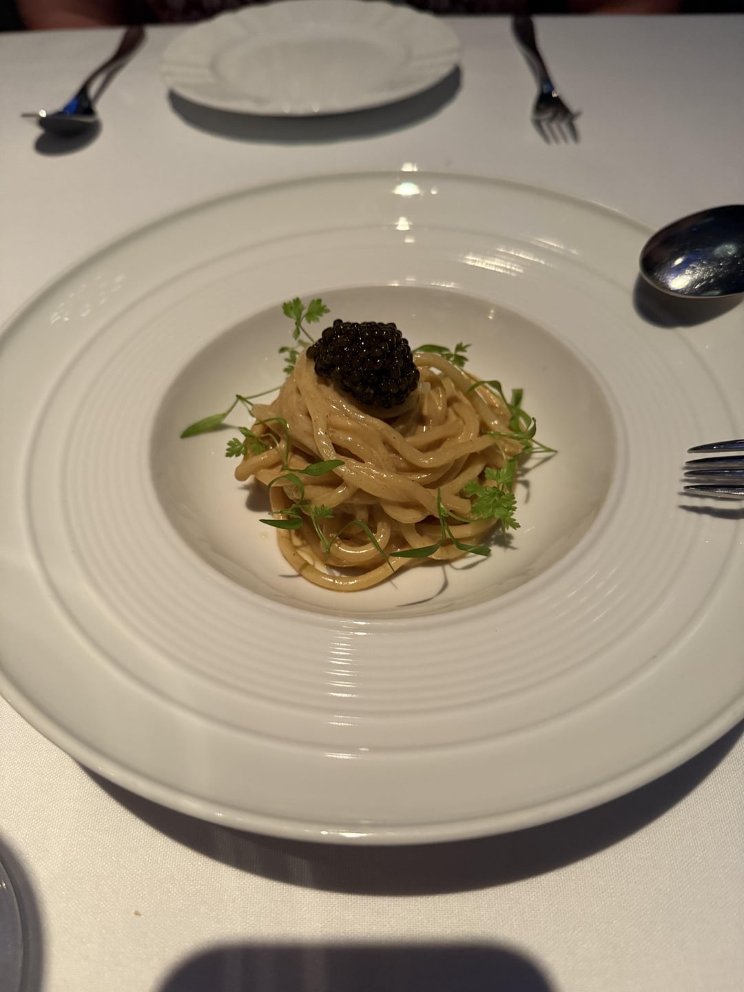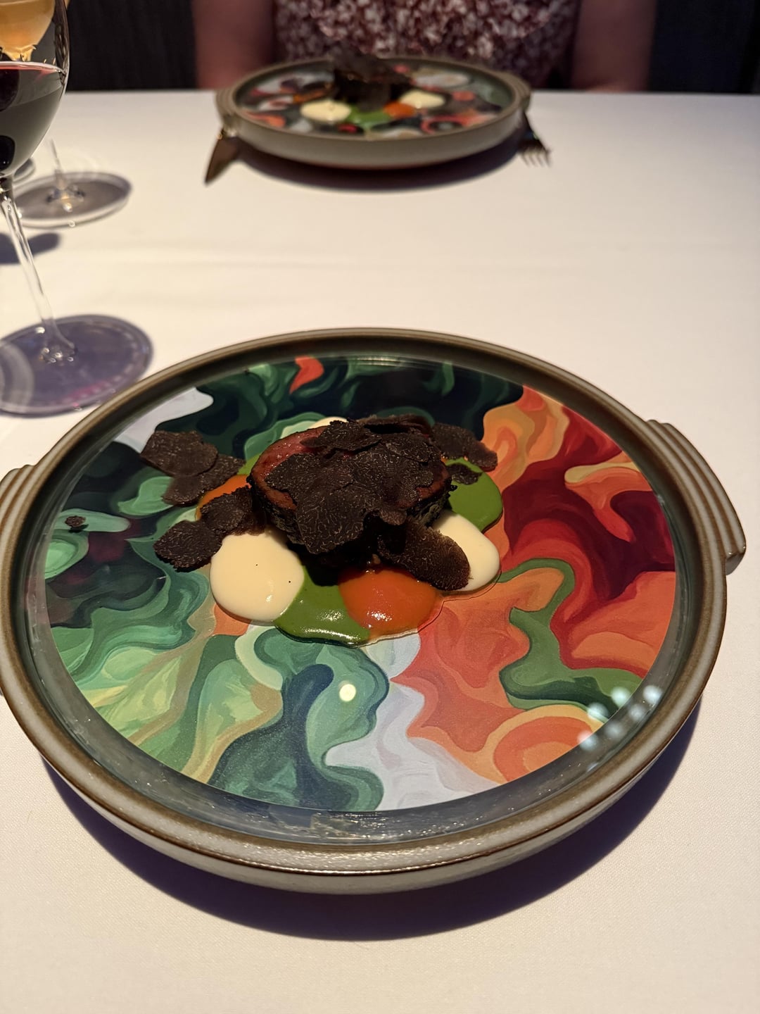 This would be one of my top 4 on the menu. I work with this dish a lot so I’m slightly biased but the sauce is absolutely perfect. The fish is buttery, smooth, and delectable. The dashi chip ontop is a great crunchy contrast to the rest of the soft dish. Love this plating as well.