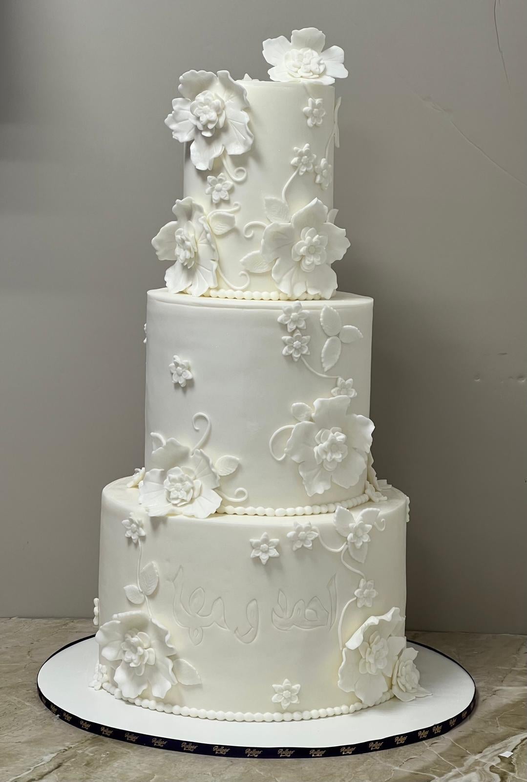 Just made this wedding cake today for a client it was my first time to this kind of heavy cake it took almost 5 h I was so nervous and careful but it went so good