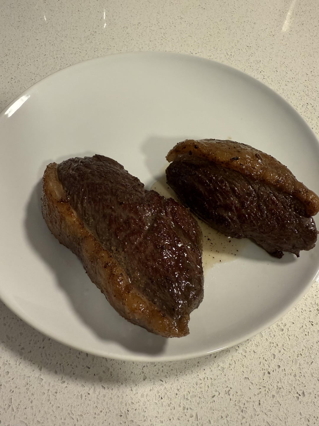 Finally got my hands on some picanha (whole from Costco, I cut them into steaks and individually vac sealed). 129 for 2.5 h, seared for 30 s each side in a pan with beef tallow. I wish I had a grill to get charcoal flavor :((( Almost pulled the trigger on the GE indoor smoker but couldn’t justify the $600 price tag.