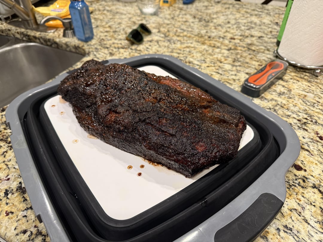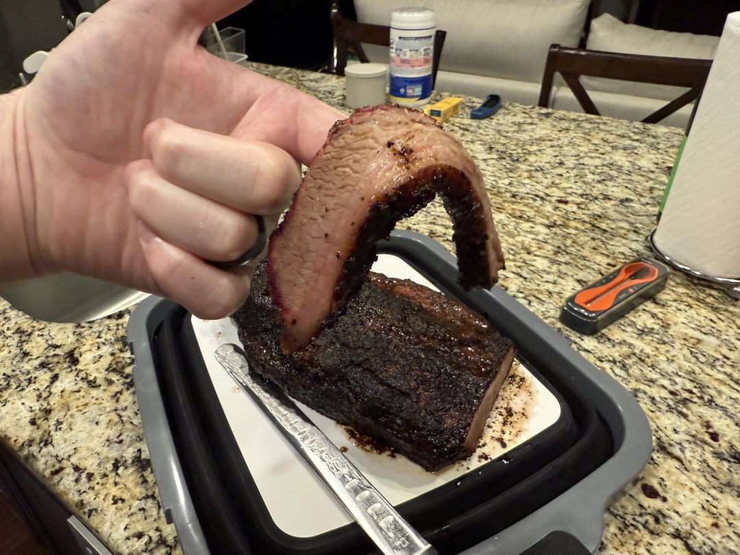 Smoked a choice 15lb packer on my Joe Classic today for just shy of 12 hours. Trimmed and seasoned with olive oil and Atlanta Grill Co. Himalayan Sherpa rub. Smoked at 225°f over post oak until it stalled around 170°. Wrapped in pink butcher paper and bumped up the temp to 250°, then back on the grill til it reached internal temp of 203°. Great bark, great smoke ring, no burnt edges or underside (double stacked deflector plates). 2 and a half hour rest wrapped in a towel and placed in the Yeti cooler. Just had a slice at 1:30 am and I’m completely blown away. This will be my exact method going forward for brisket from now on!