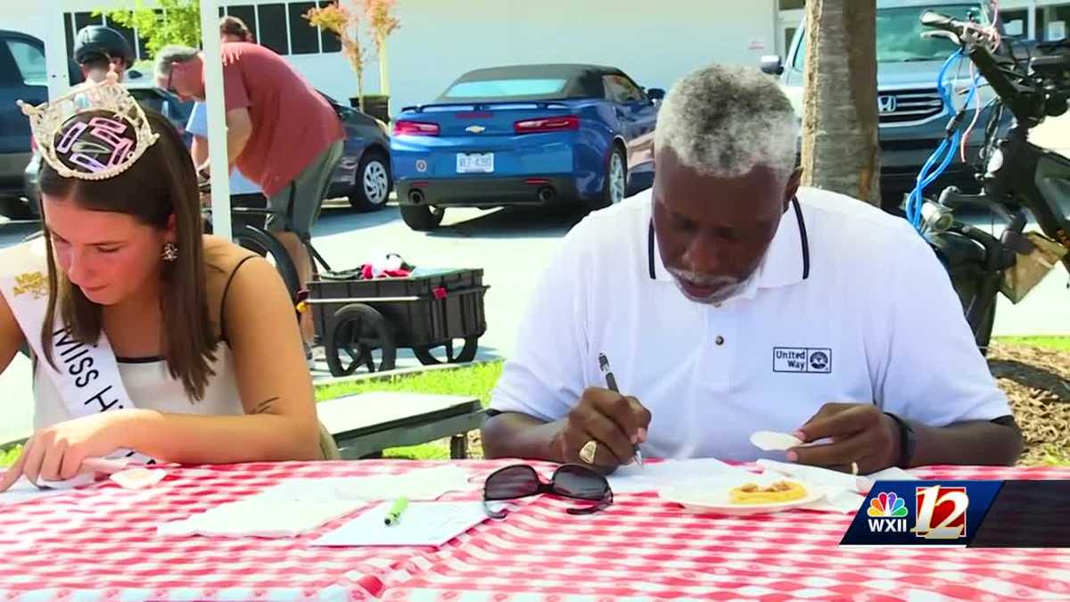 GIRLS AGES 10 TO 18. DOZENS OF BAKERS GATHERED IN HIGH POINT TODAY TO PUT THEIR SKILLS TO THE TEST. THE HIGH POINT FARMERS MARKET HELD ITS PEACH PALOOZA PEACH RECIPE CONTEST THIS MORNING. THE CONTEST WAS OPEN TO AMATEUR BAKERS ONLY. EACH BAKER WAS REQUIRED TO USE AT LEAST TWO CUPS OF THE STONE FRUIT IN THEIR DISH IN ORDER TO QUALIFY. TODAY WE ARE AT THE HIGH POINT FARMERS MARKET AND WE ARE HAVING OUR FIRST RECIPE CONTEST OF THE YEAR. IT’S OUR PEACH PALOOZA PEACH RECIPE CONTEST. THE GOAL OF THIS MARKET IS JUST TO SUPPORT LOCAL FARMERS AND LOCAL ARTISANS. KATE PONCHO’S PEACH COBBLER COOKIES CAME IN FIRST PLACE. EBONY BARNES PEACH MANGO SALSA CAME IN SECOND, AND ROS
