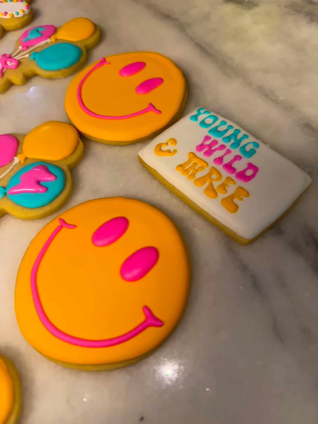 another practice set using an old party invitation for inspo. Unhappy with the flowers but I’m still practicing. The balloon cutter is a new addition, I didn’t think to flood the background before adding the balloons but oh well.